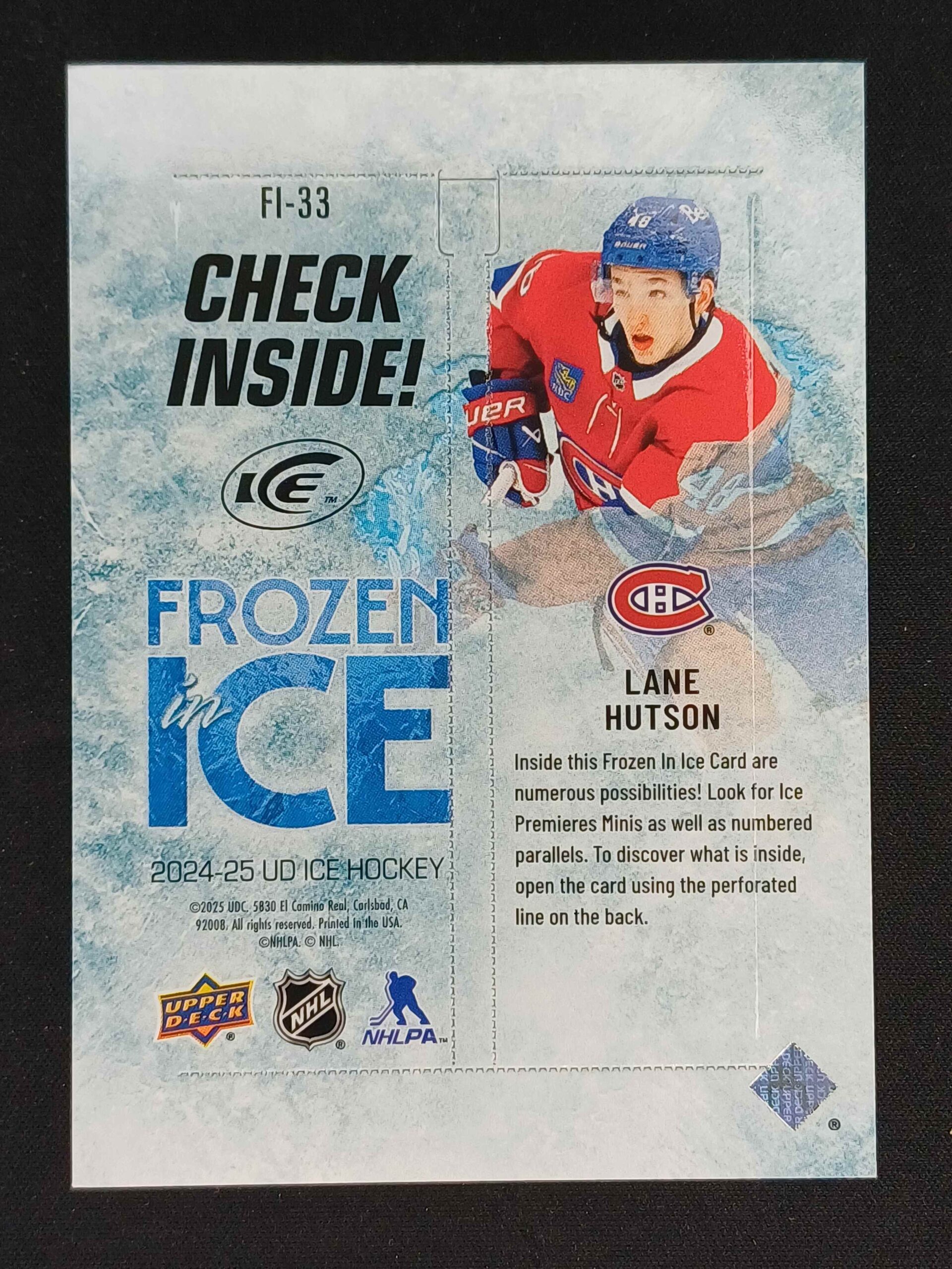 Sběratelská karta 2024/2025 Upper Deck ICE Frozen in Ice FI-33 Lane Hutson Inzert