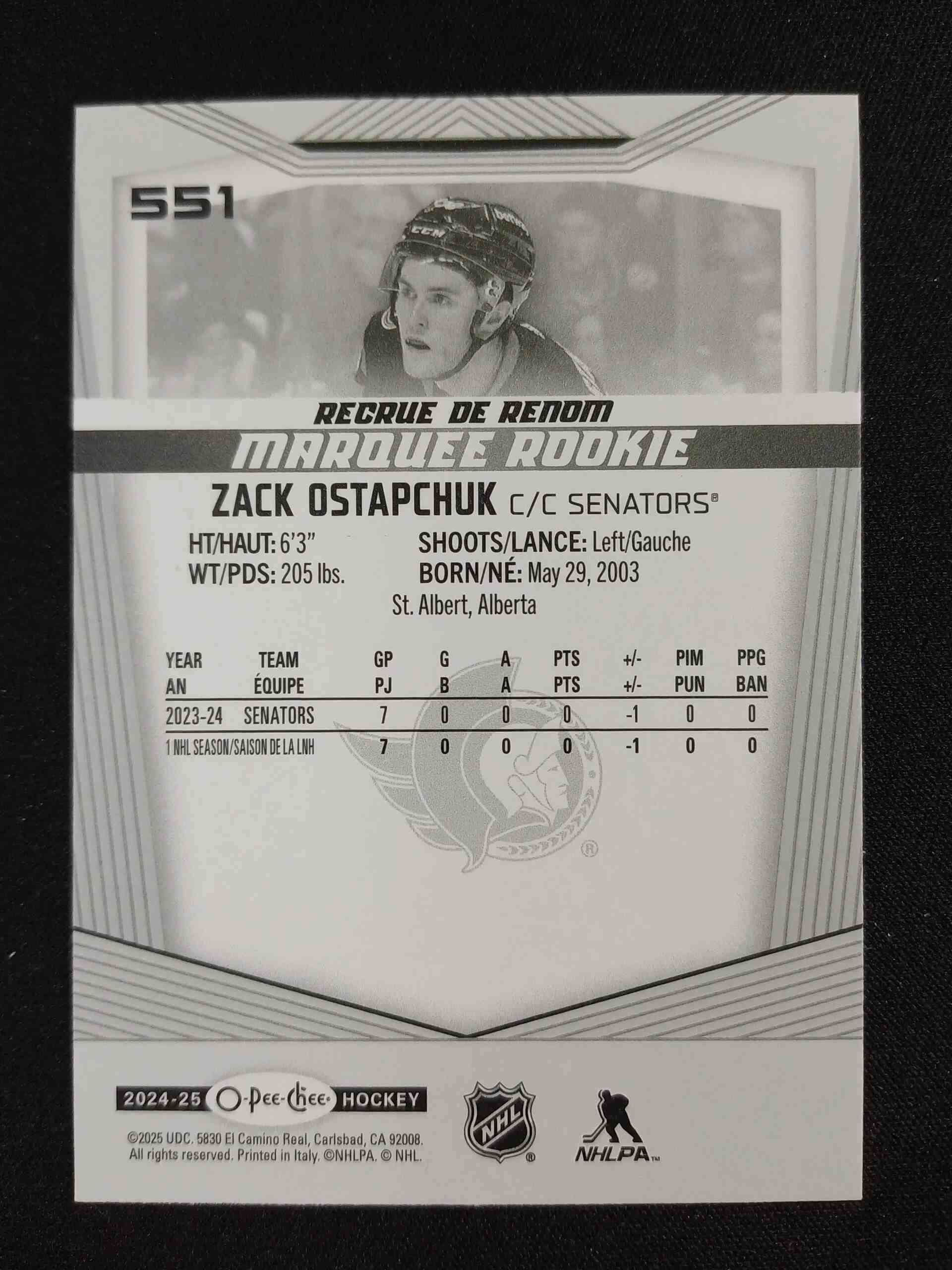 2024/2025 Upper Deck O-Pee-Chee Marquee Rookie 551 Zack Ostapchuk