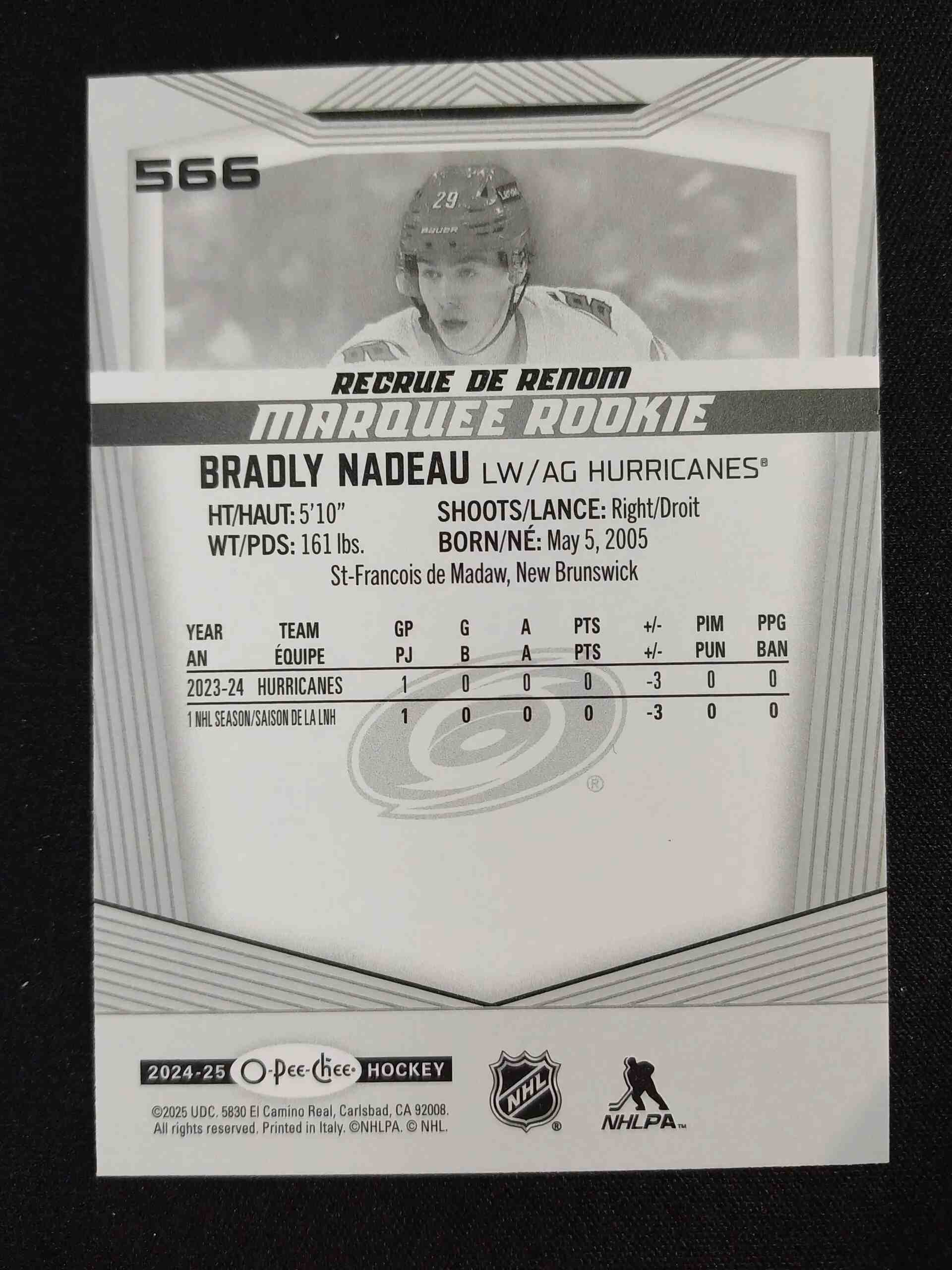 Sběratelská karta 2024/2025 Upper Deck O-Pee-Chee Marquee Rookie 591 Bradly Nadeau