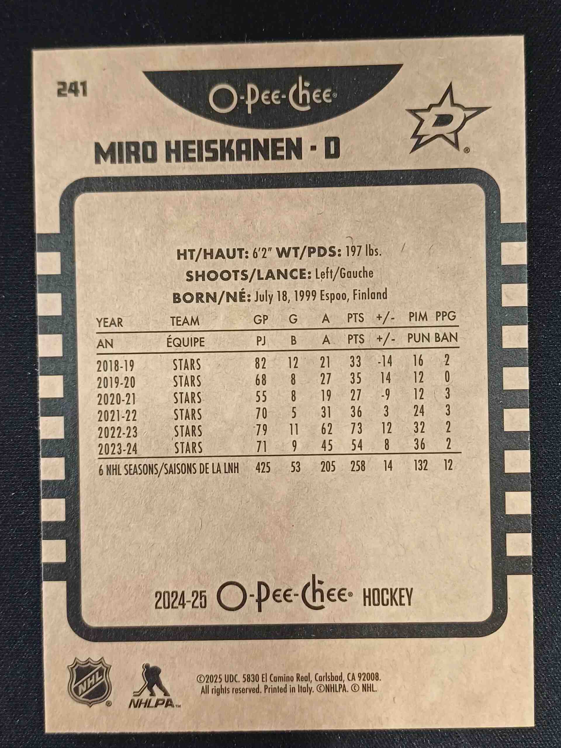 Sběratelská karta 2024/2025 Upper Deck O-Pee-Chee Retro 241 Miro Heiskanen Paralel