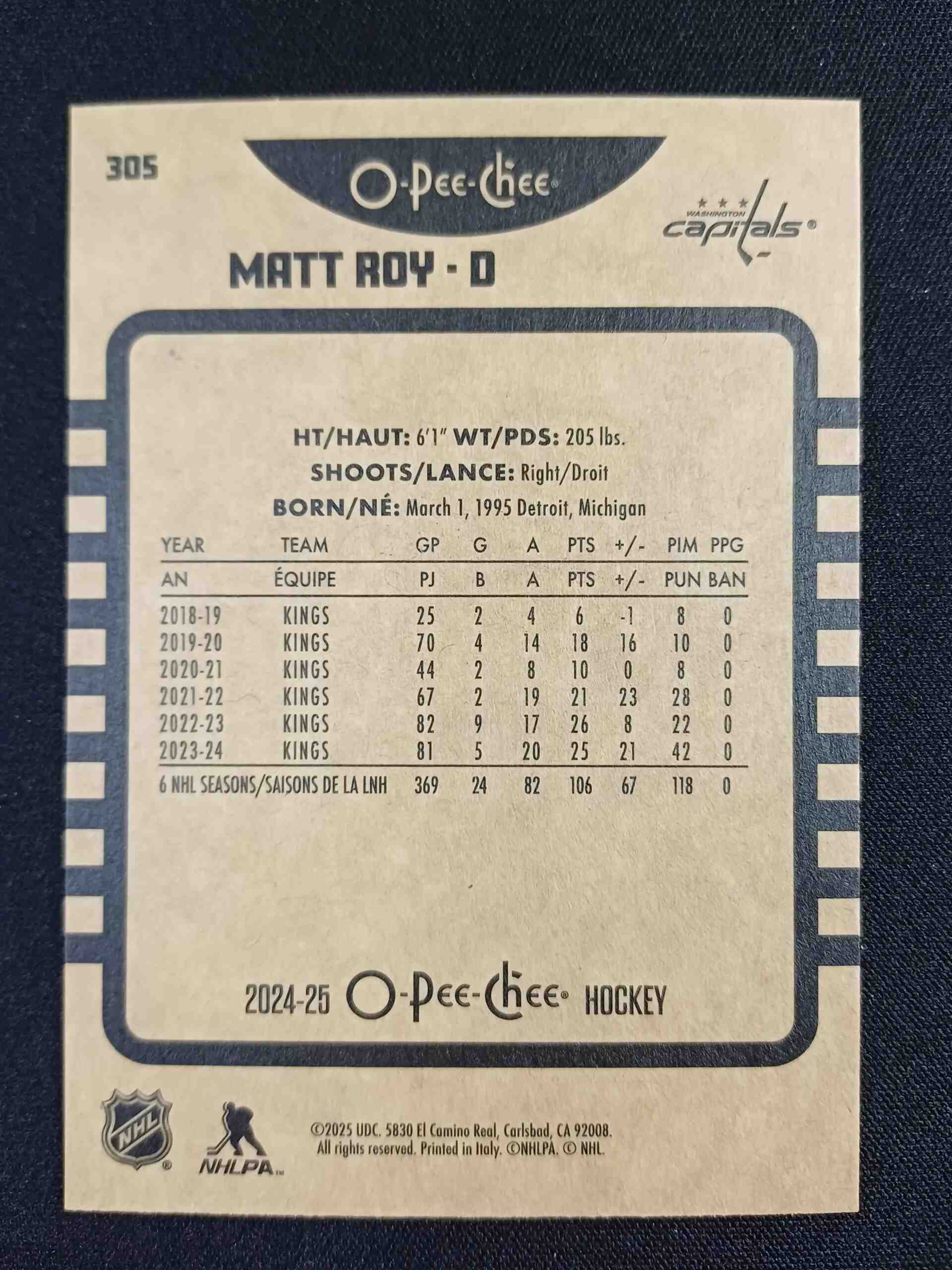 2024/2025 Upper Deck O-Pee-Chee Retro 305 Matt Roy Paralel