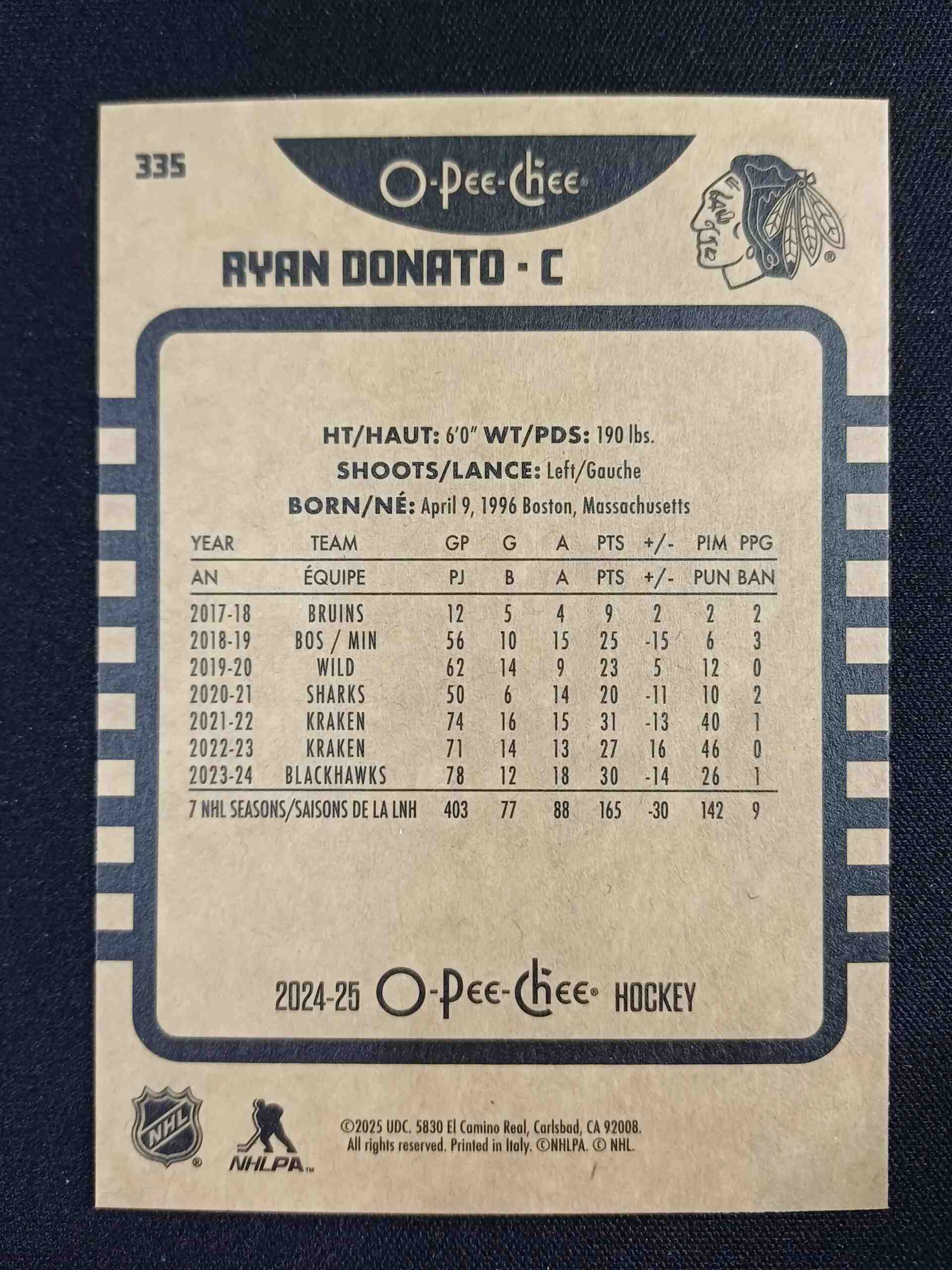 Sběratelská karta 2024/2025 Upper Deck O-Pee-Chee Retro 335 Ryan Donato Paralel