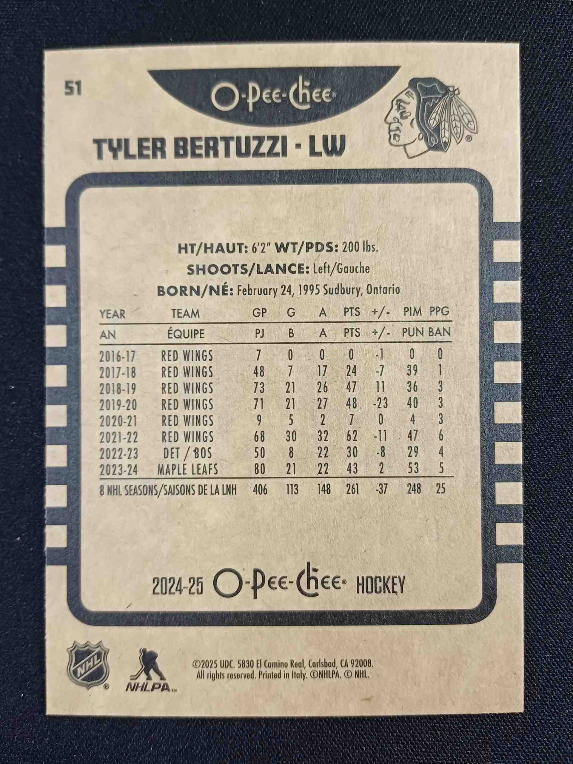 Sběratelská karta 2024/2025 Upper Deck O-Pee-Chee Retro 51 Tyler Bertuzzi Paralel