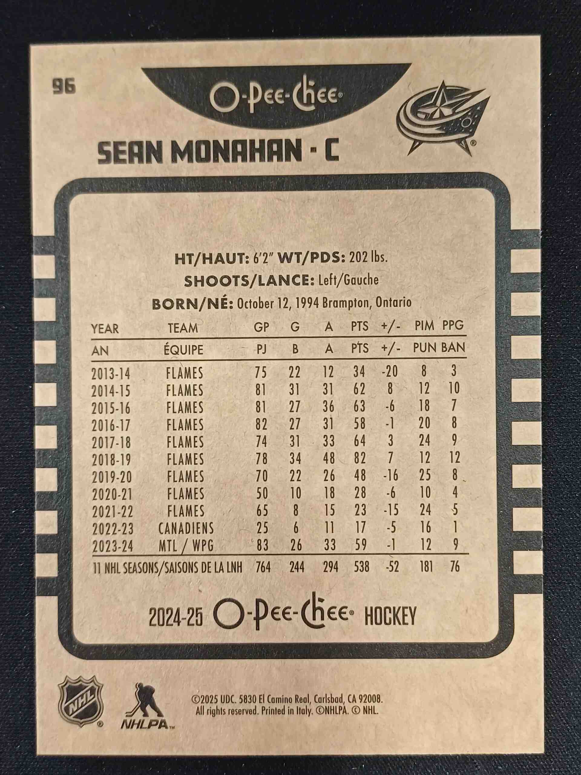 Sběratelská karta 2024/2025 Upper Deck O-Pee-Chee Retro 96 Sean Monahan Paralel