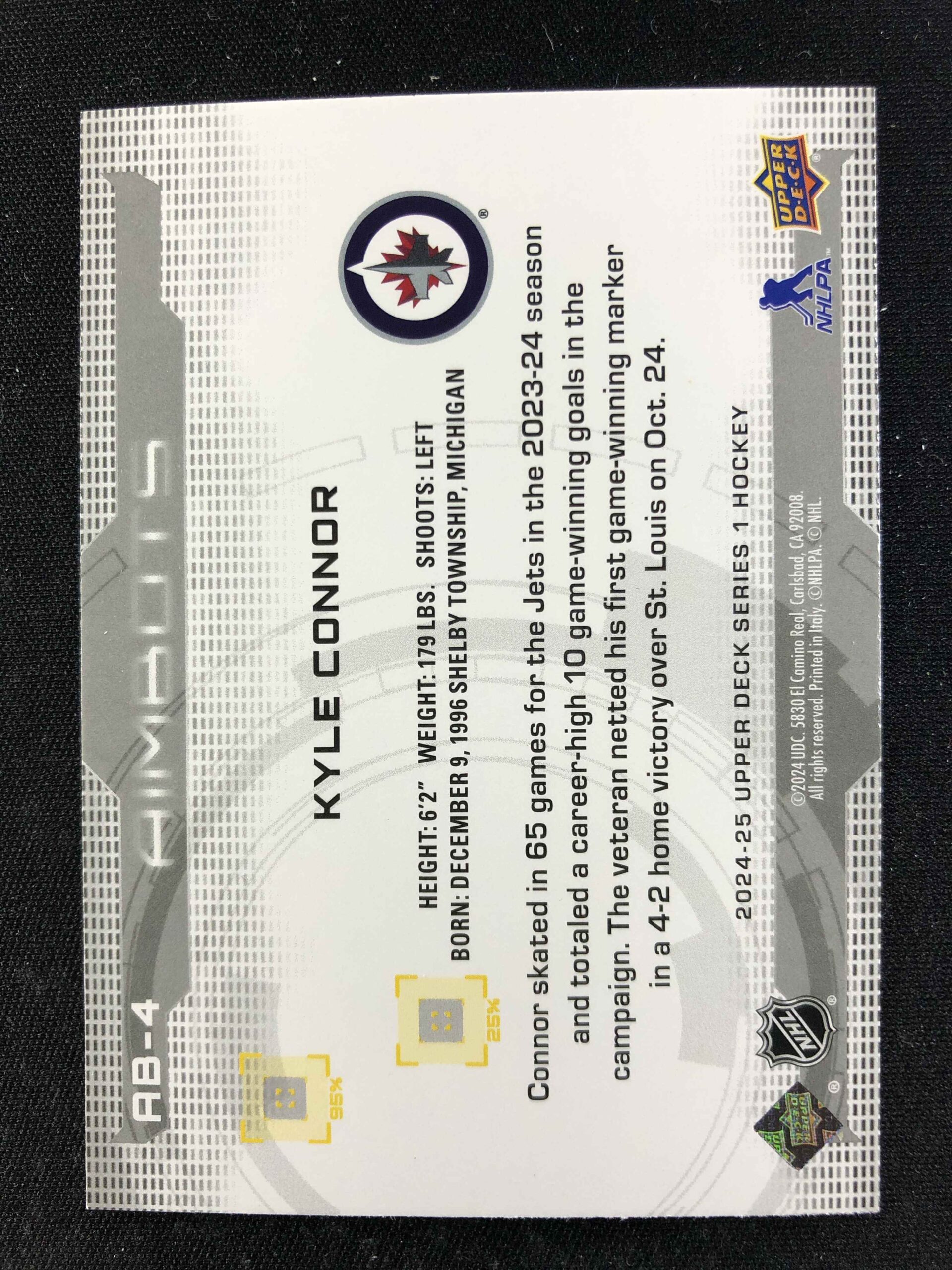 2024/2025 Upper Deck Series 1 Aimbots AB-4 Kyle Connor Inzert