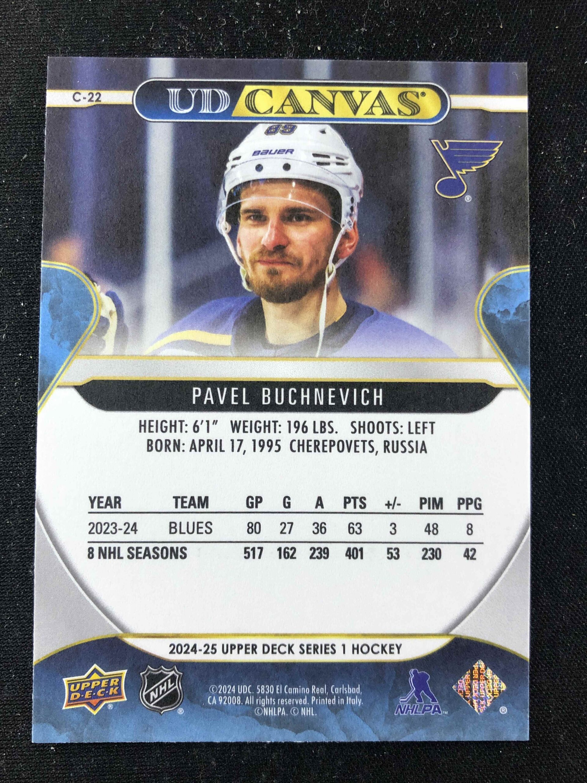 Sběratelská karta 2024/2025 Upper Deck Series 1 Canvas C-22 Pavel Buchnevich Inzert
