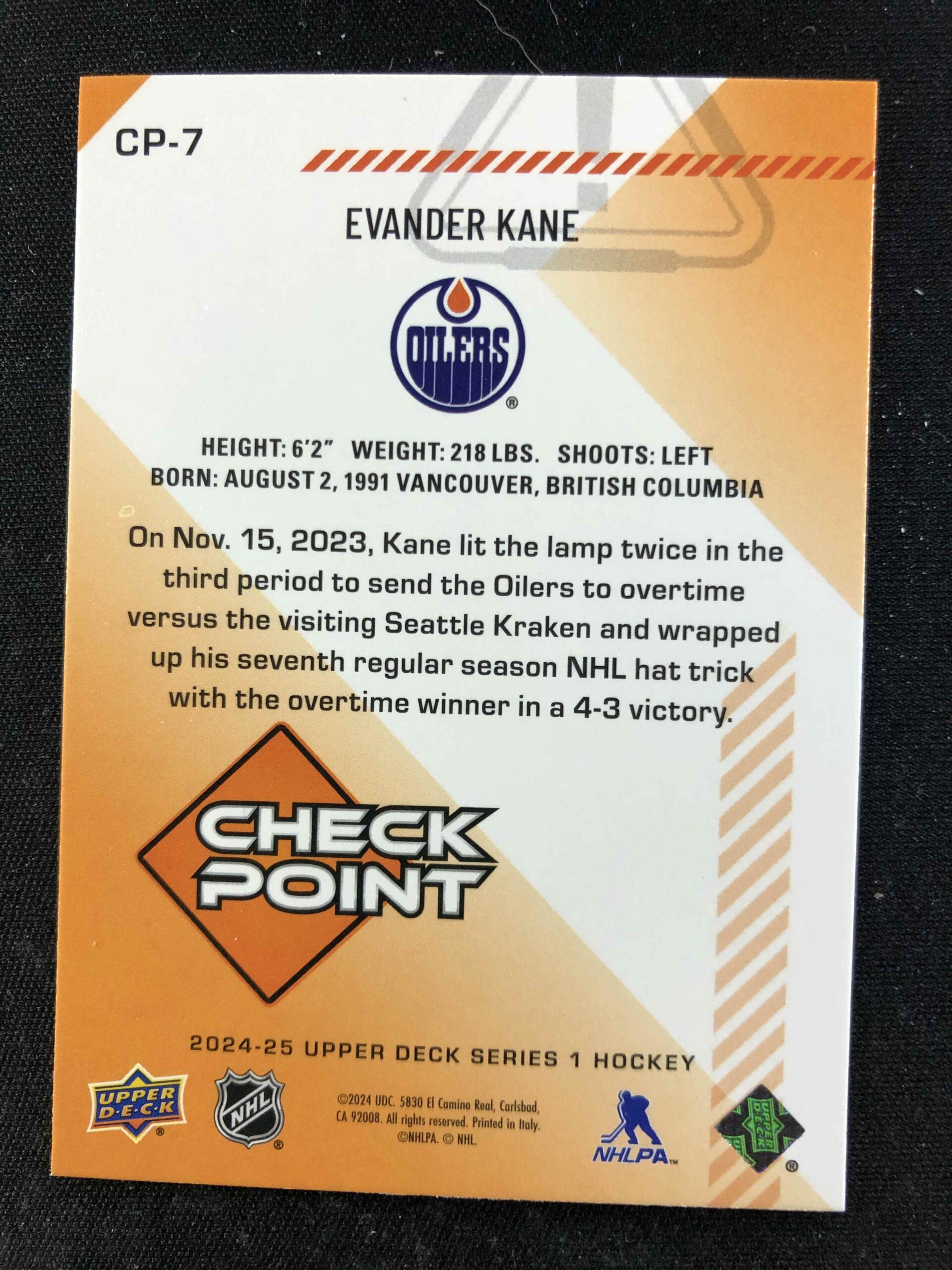 Sběratelská karta 2024/2025 Upper Deck Series 1 Checkpoint CP-7 Evander Kane Inzert