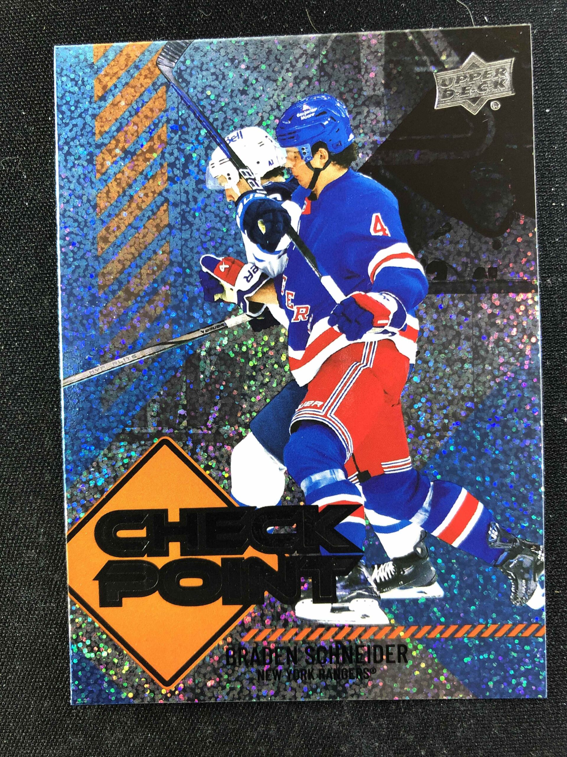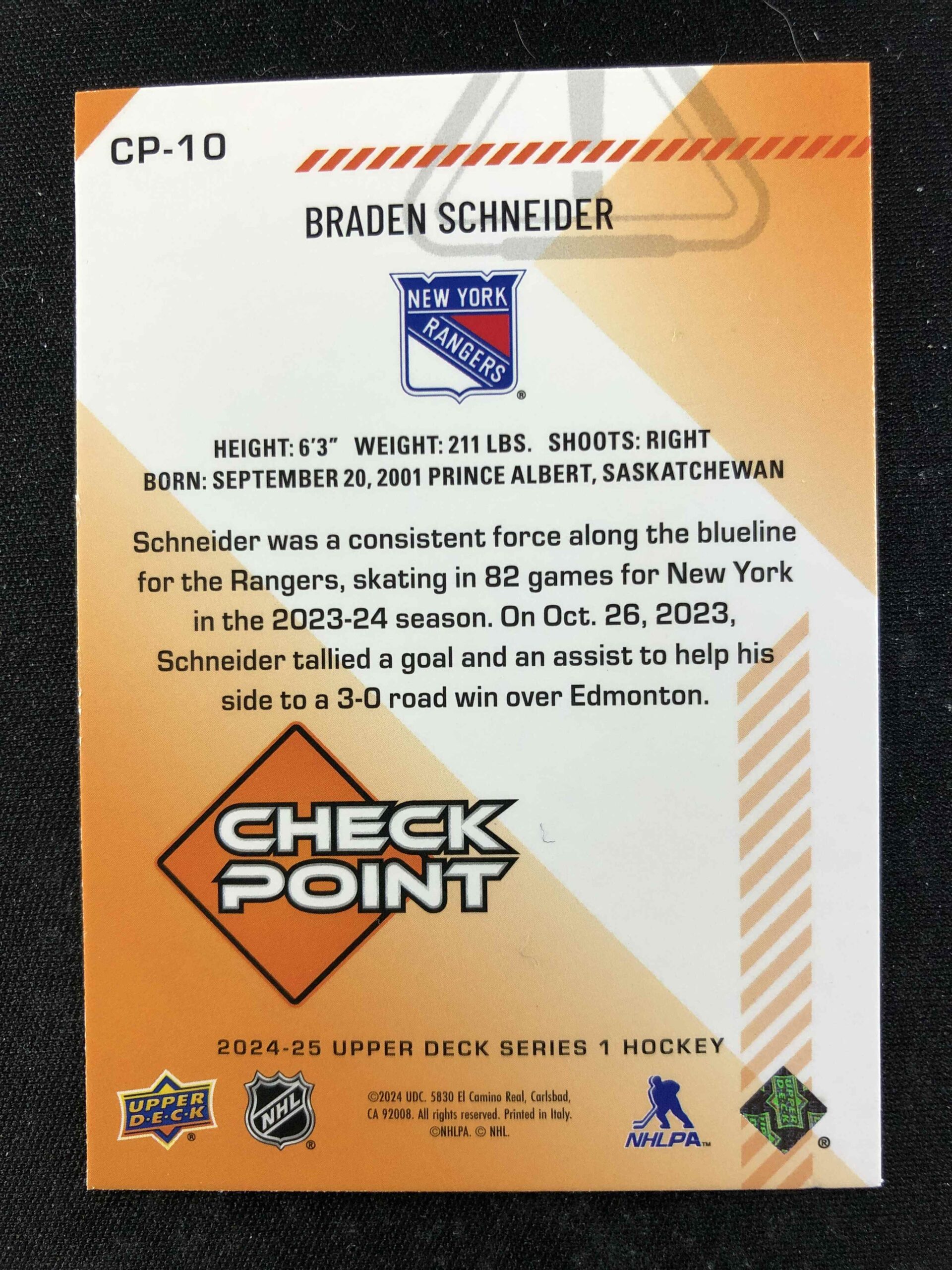 Sběratelská karta 2024/2025 Upper Deck Series 1 Checkpoint Speckled CP-10 Braden Schneider Inzert