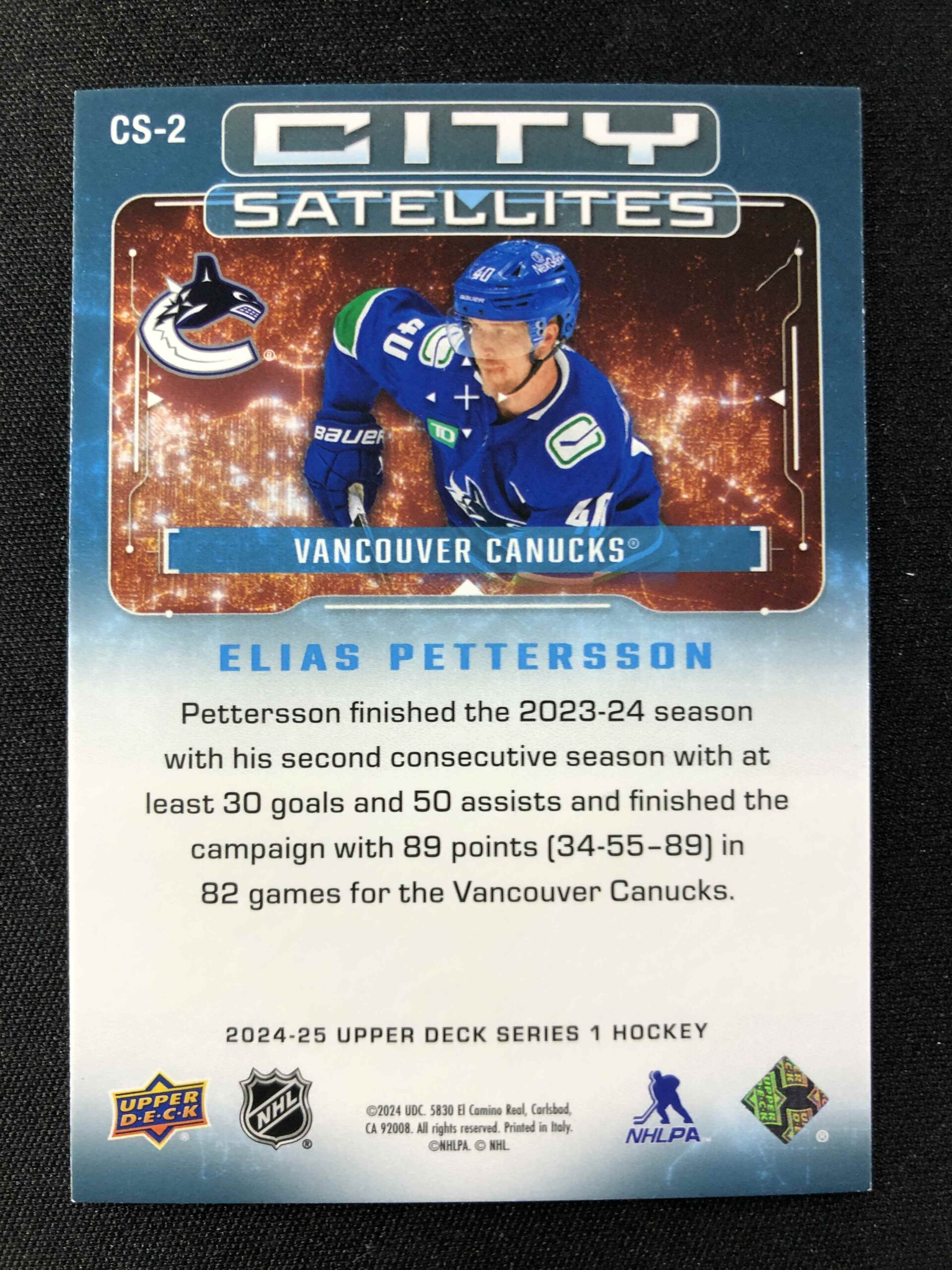 2024/2025 Upper Deck Series 1 City Satellites Speckled CS-2 Elias Pettersson Inzert