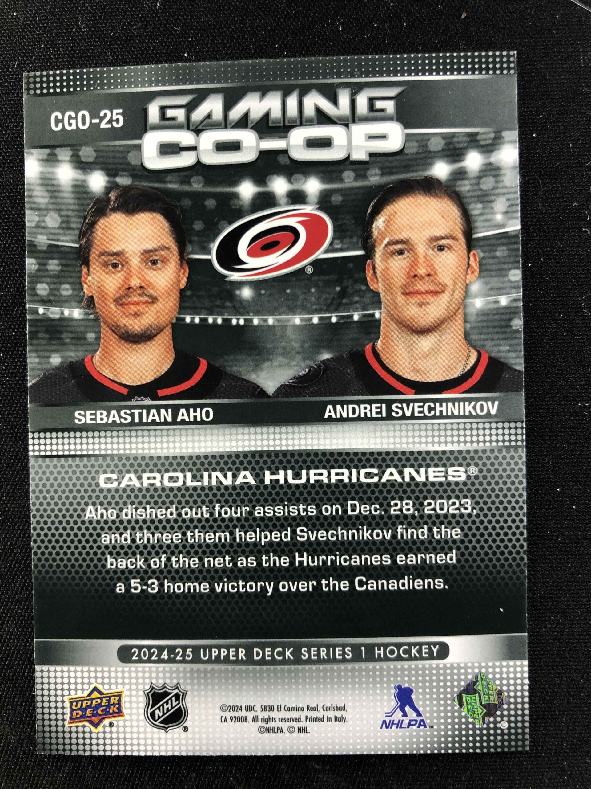 Sběratelská karta 2024/2025 Upper Deck Series 1 Gaming Co-op CGO-25 Sebastian Aho, Andrei Svechnikov Inzert