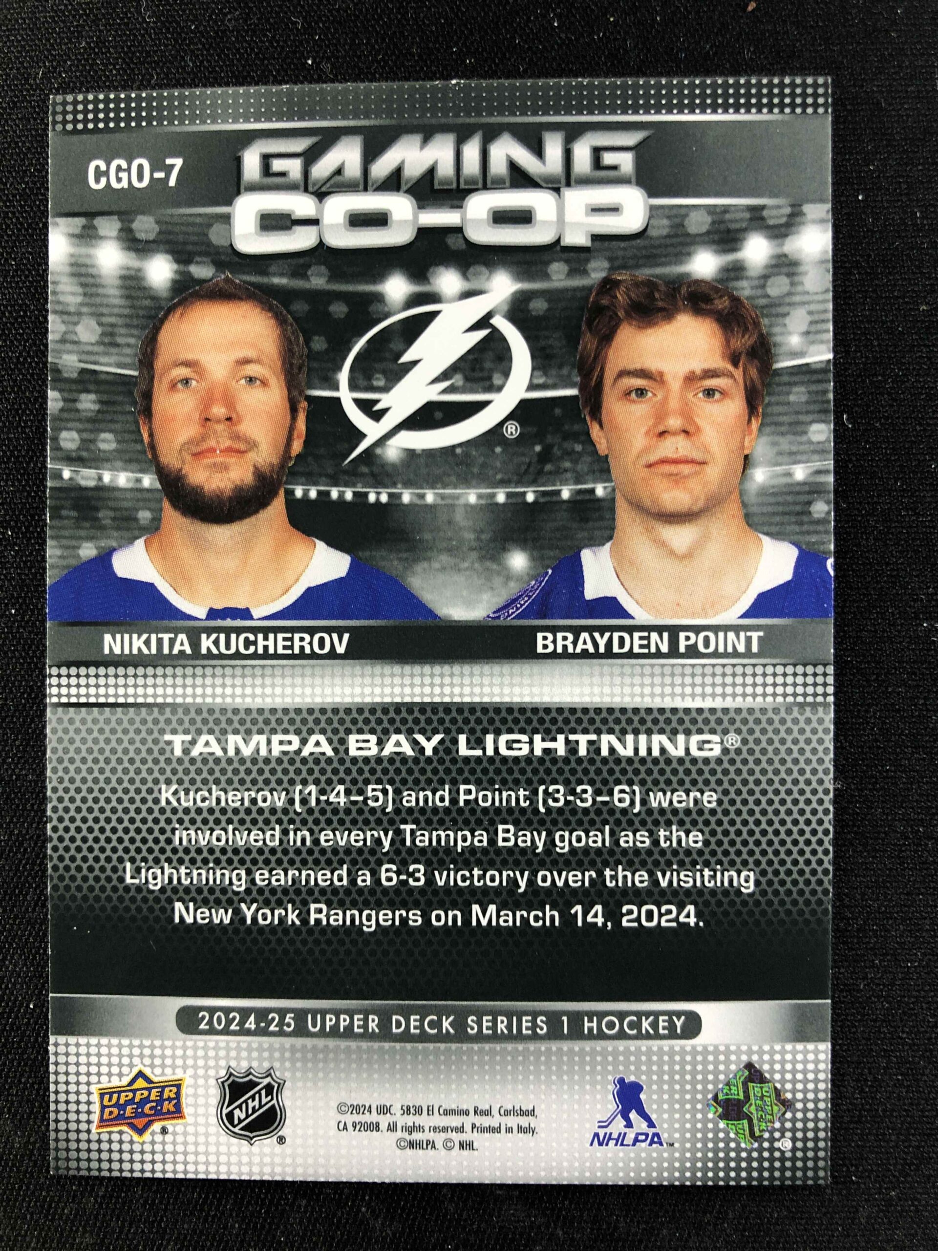 Sběratelská karta 2024/2025 Upper Deck Series 1 Gaming Co-op CGO-7 Nikita Kucherov, Brayden Point Inzert