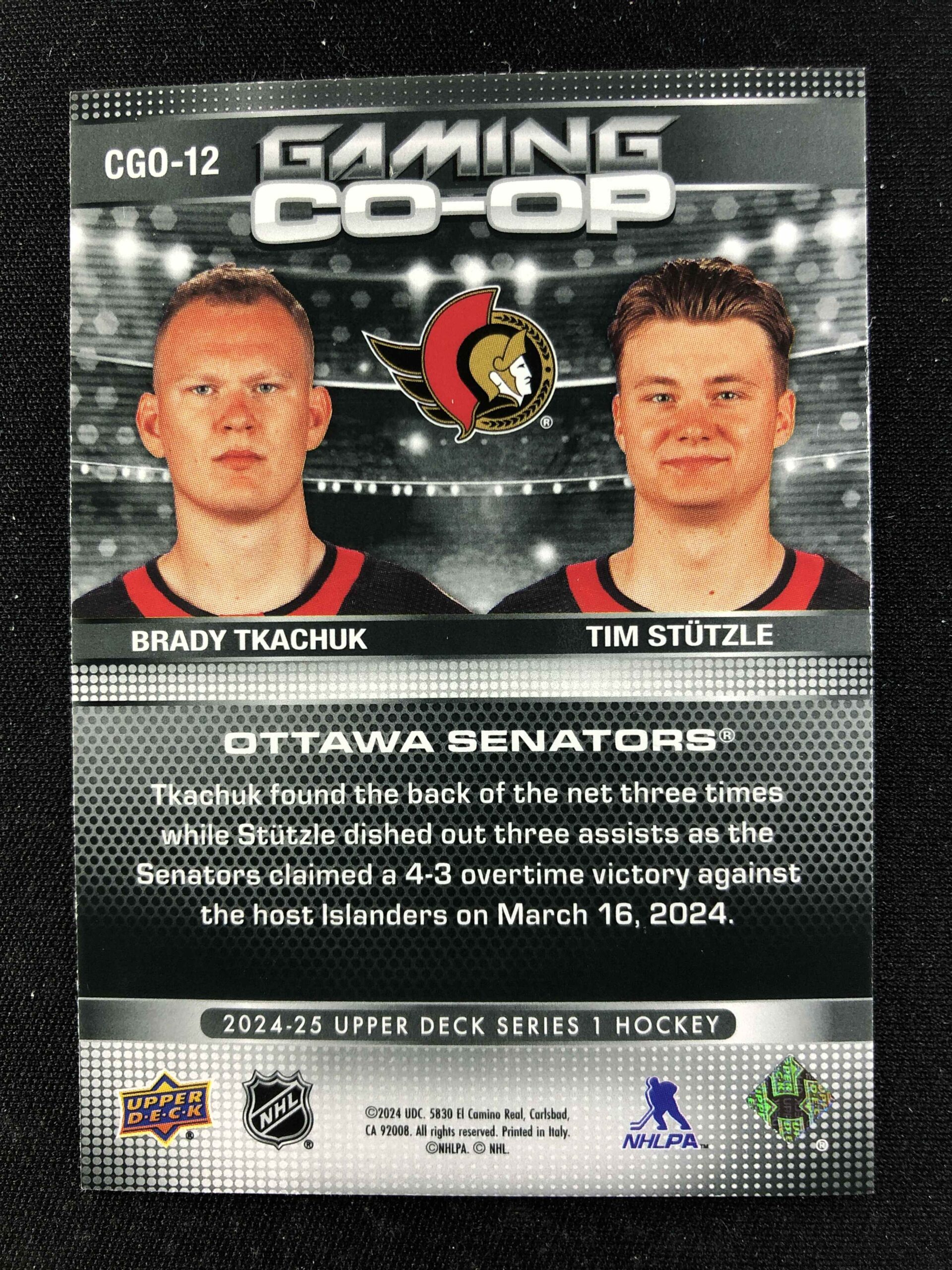 Sběratelská karta 2024/2025 Upper Deck Series 1 Gaming Co-op Speckled CGO-12 Brady Tkachuk, Tim Stutzle Inzert