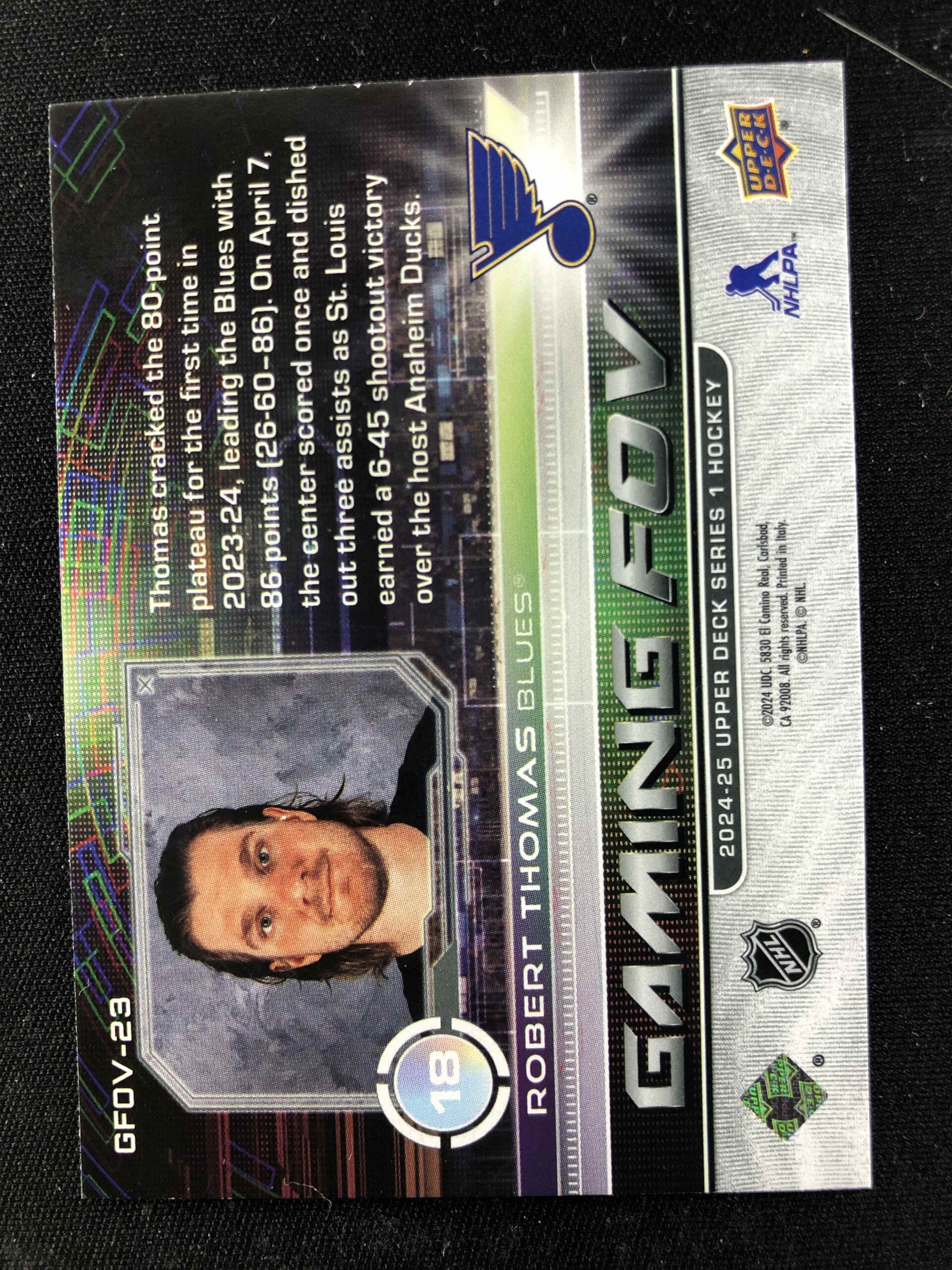 Sběratelská karta 2024/2025 Upper Deck Series 1 Gaming FOV GFOV-23 Robert Thomas Inzert