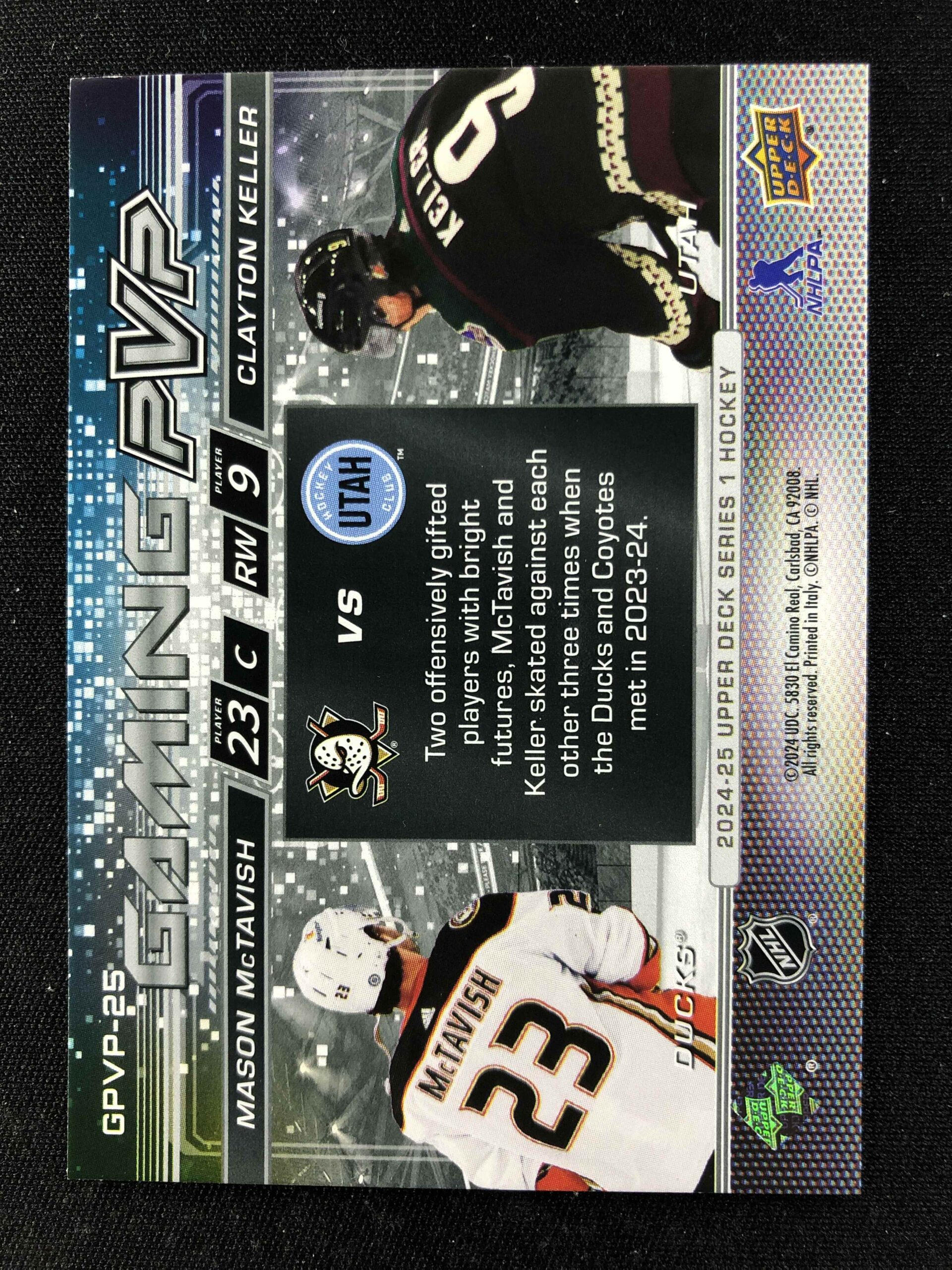 Sběratelská karta 2024/2025 Upper Deck Series 1 Gaming PVP GPVP-25 Mason MacTavish, Clayton Keller Inzert