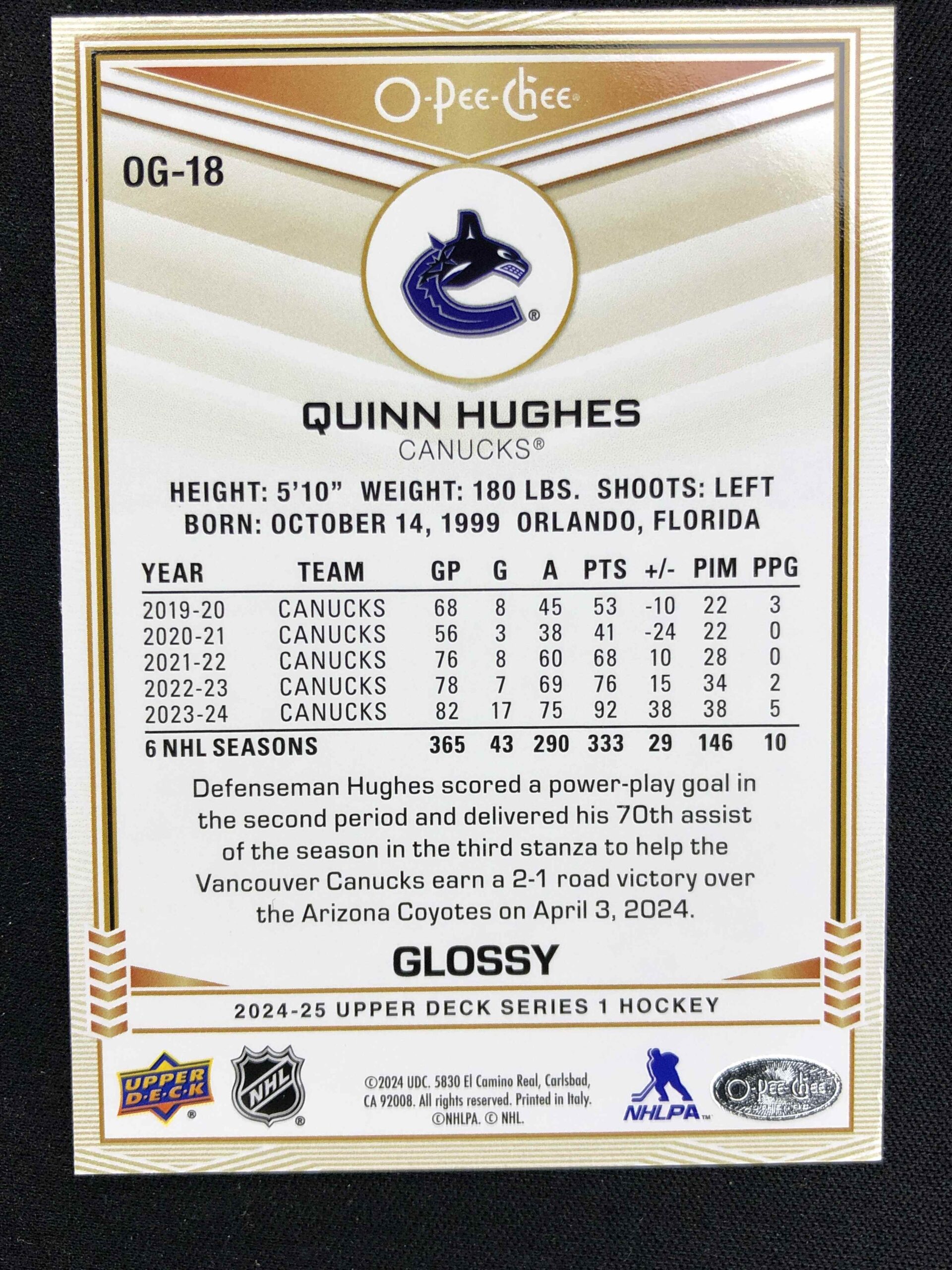 2024/2025 Upper Deck Series 1 Glossy OG-18 Quinn Hughes Inzert