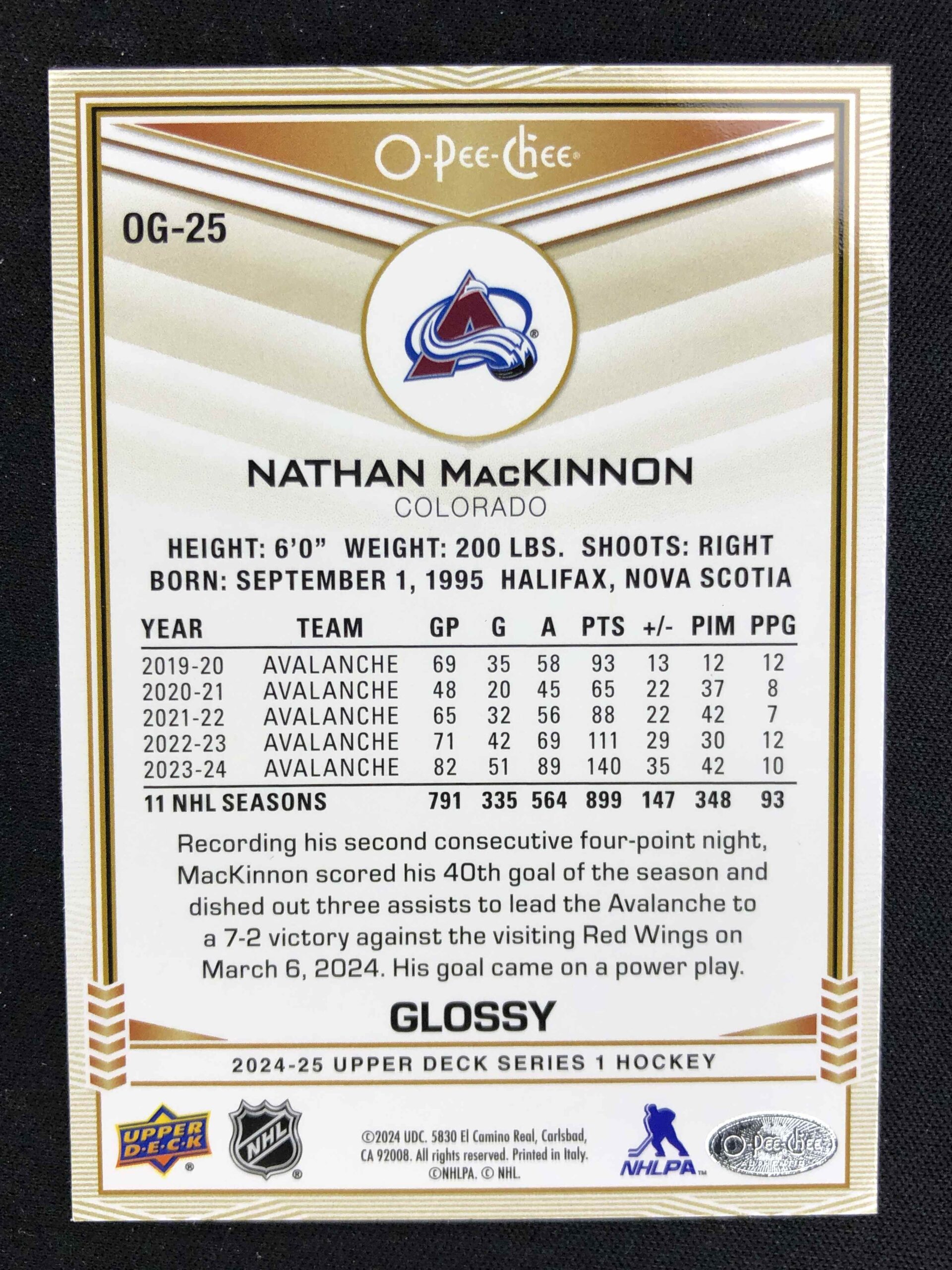 2024/2025 Upper Deck Series 1 Glossy OG-25 Nathan MacKinnon Inzert