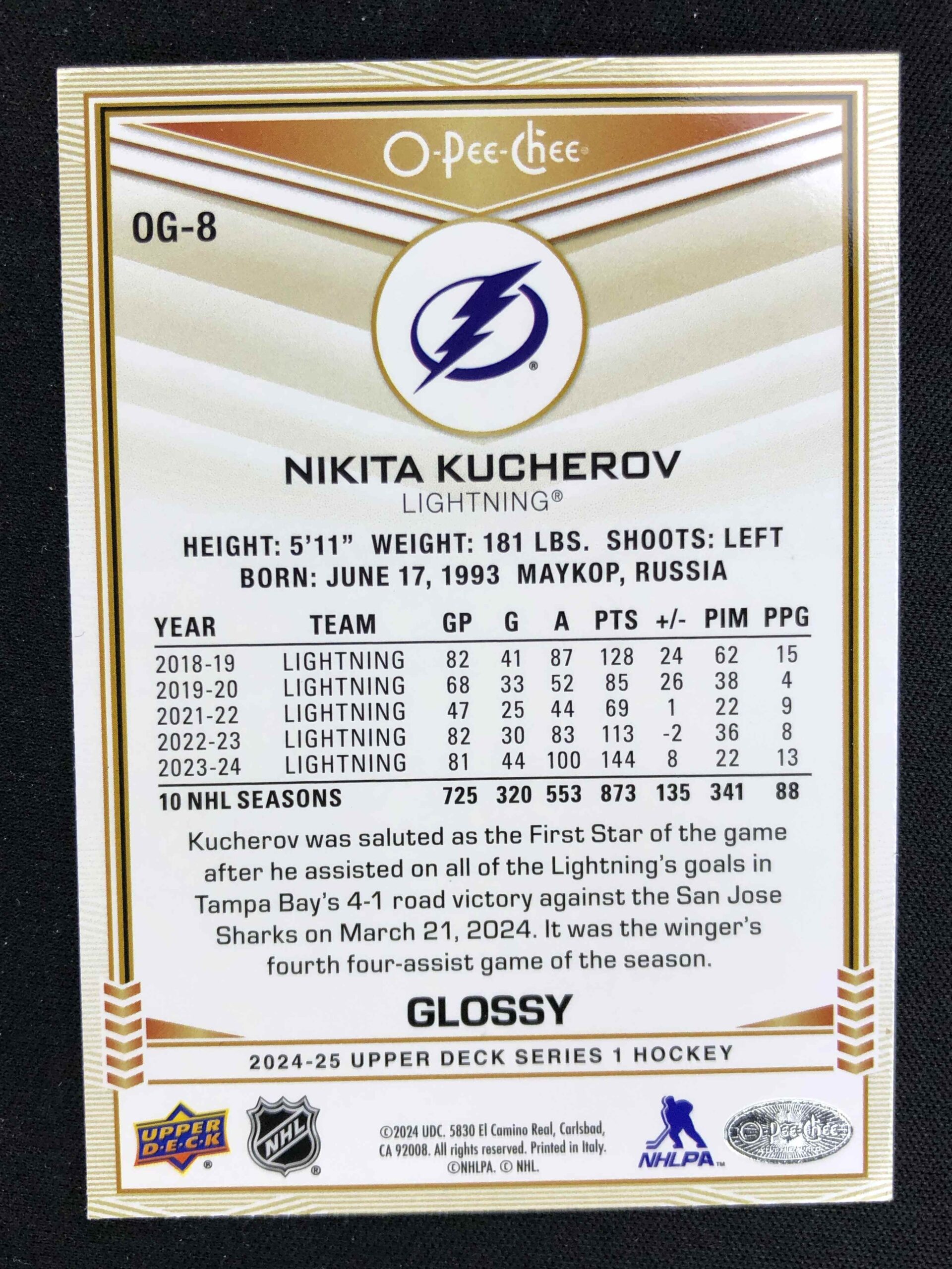 Sběratelská karta 2024/2025 Upper Deck Series 1 Glossy OG-8 Nikita Kucherov Inzert