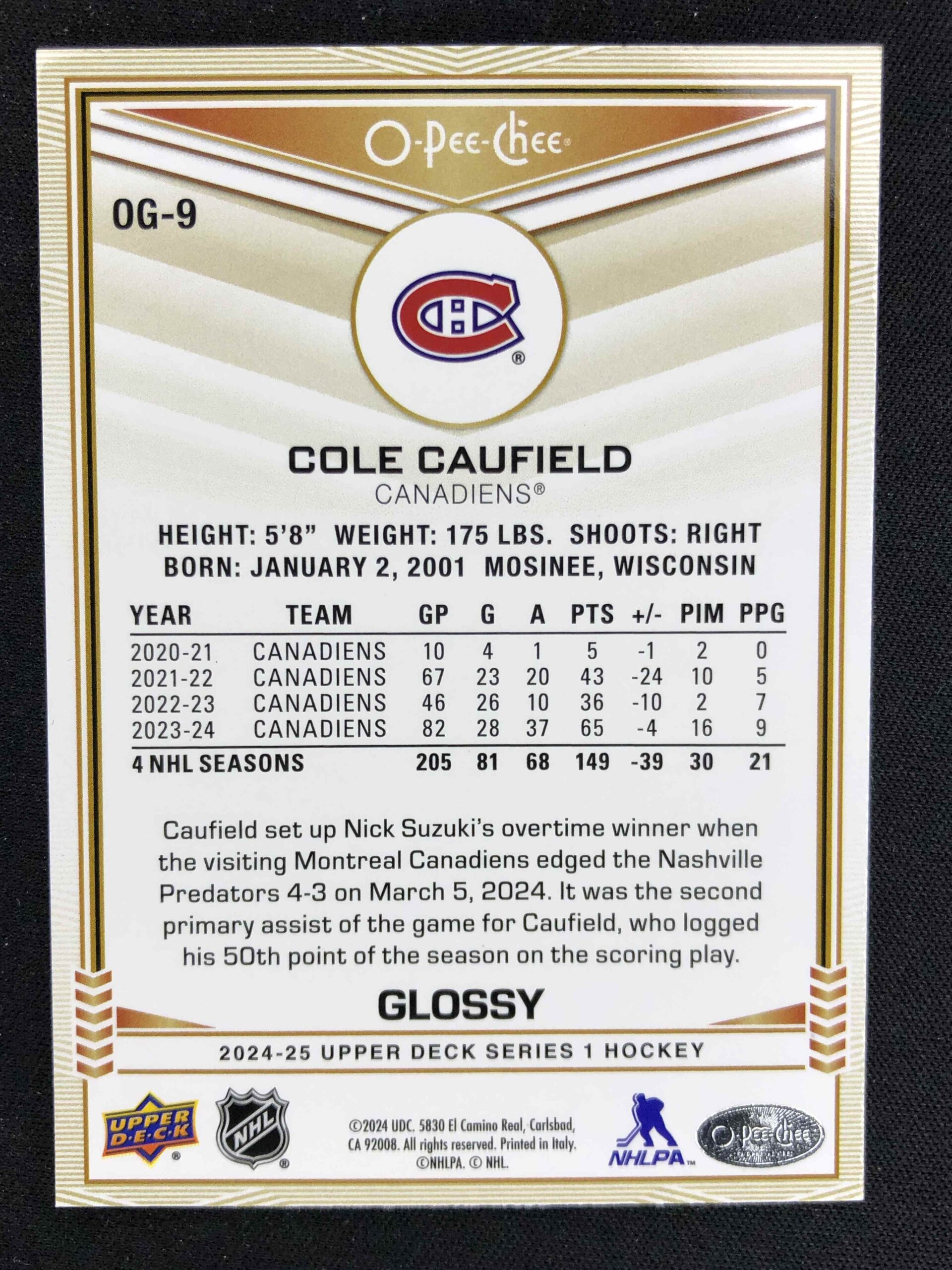 Sběratelská karta 2024/2025 Upper Deck Series 1 Glossy OG-9 Cole Caufield Inzert
