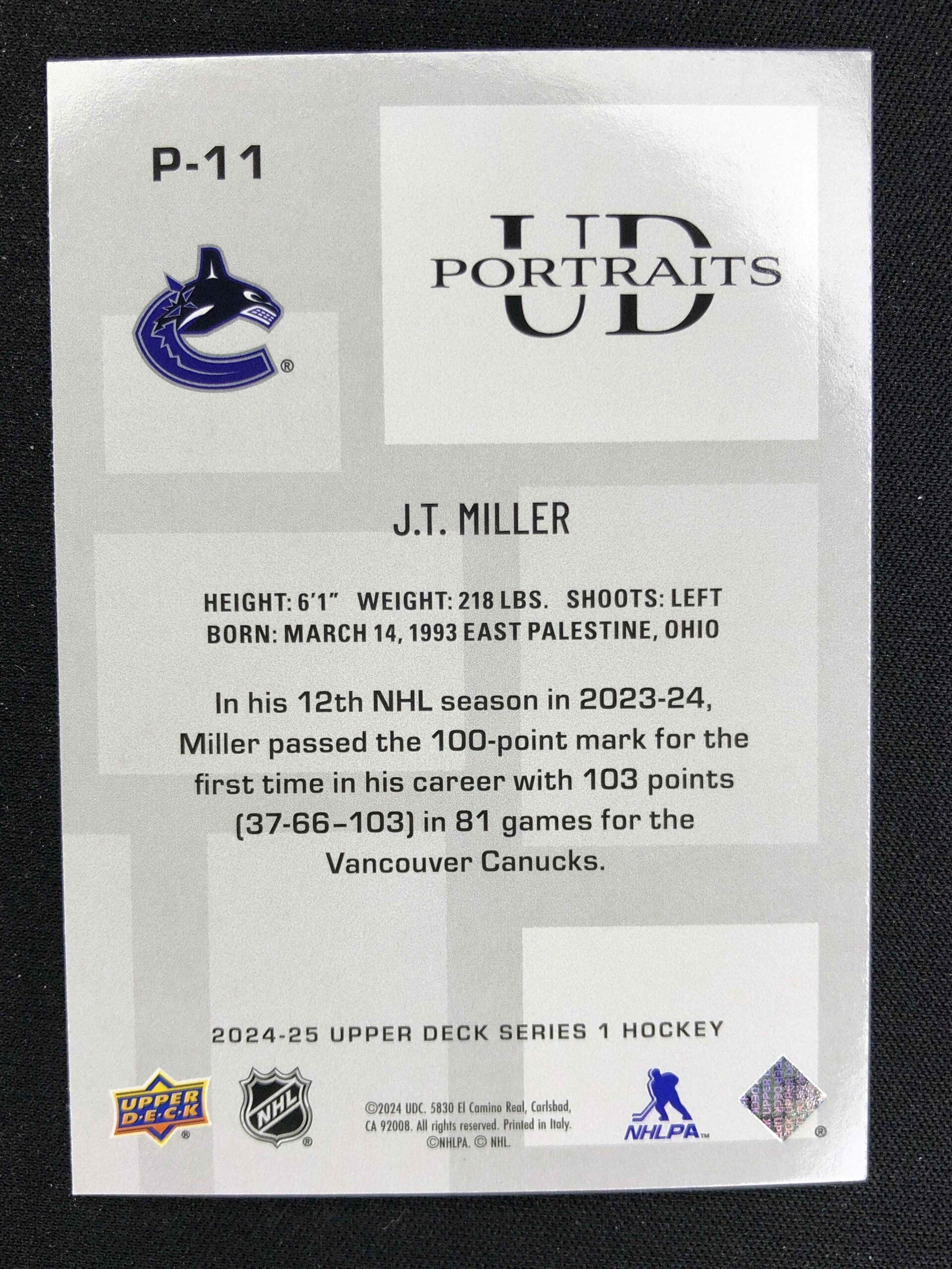 Sběratelská karta 2024/2025 Upper Deck Series 1 Portraits P-11 J.T. Miller Inzert