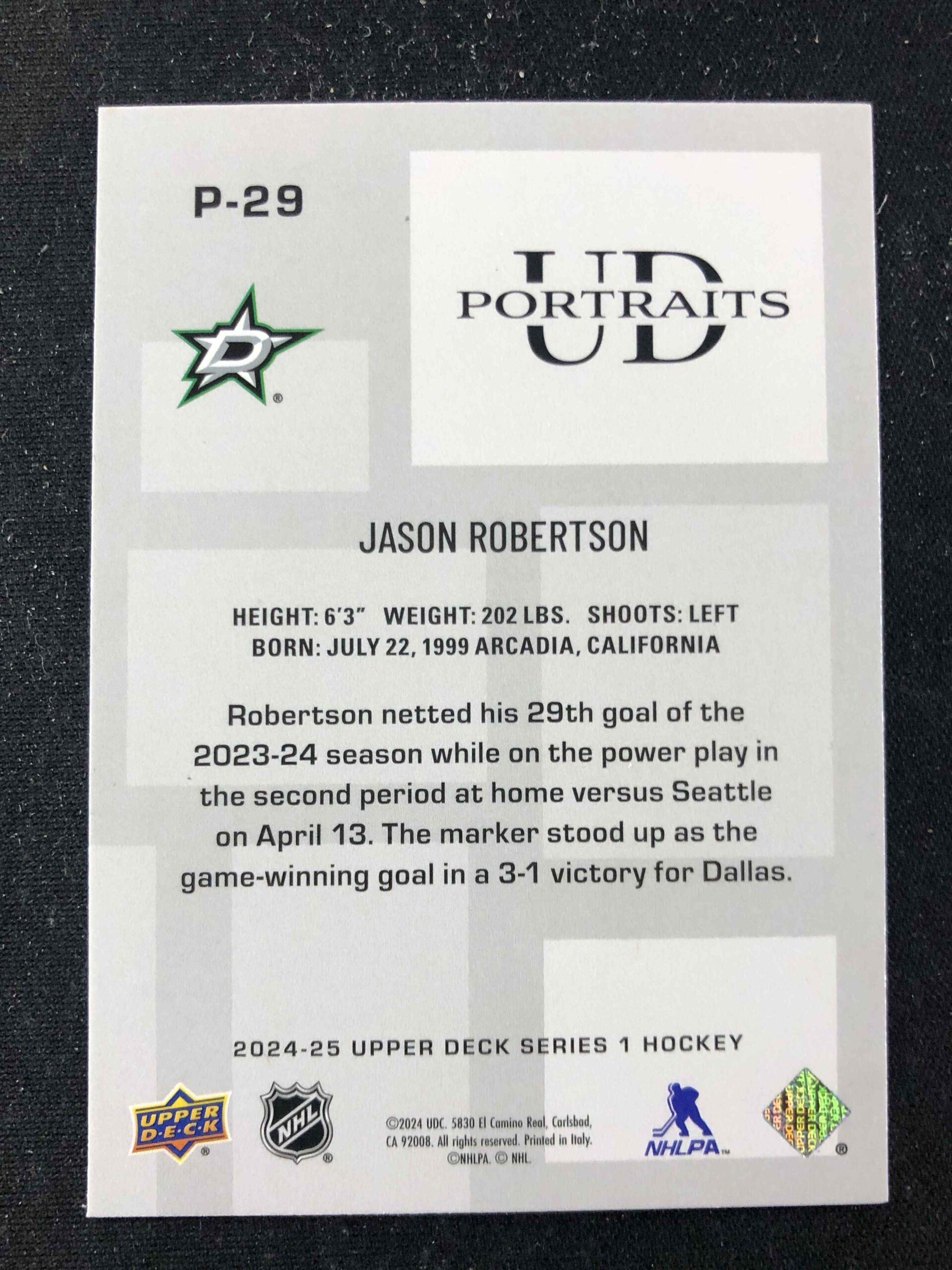 Sběratelská karta 2024/2025 Upper Deck Series 1 Portraits P-29 Jason Robertson Inzert