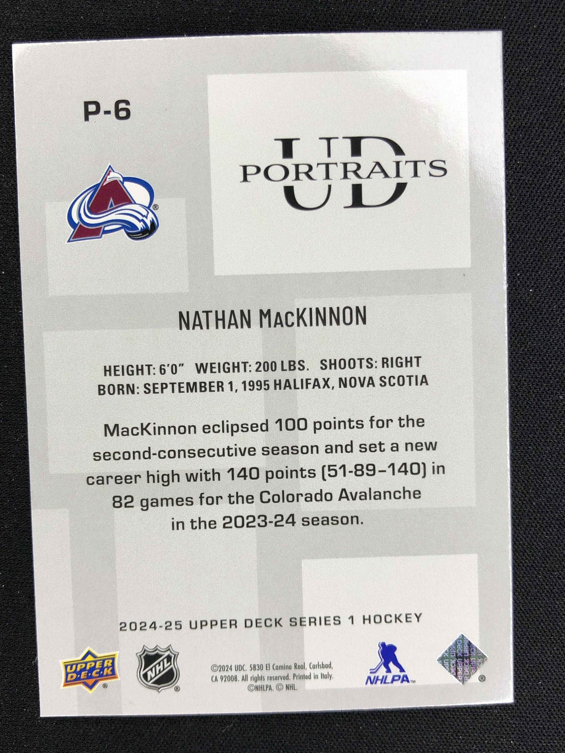 Sběratelská karta 2024/2025 Upper Deck Series 1 Portraits P-6 Nathan MacKinnon Inzert