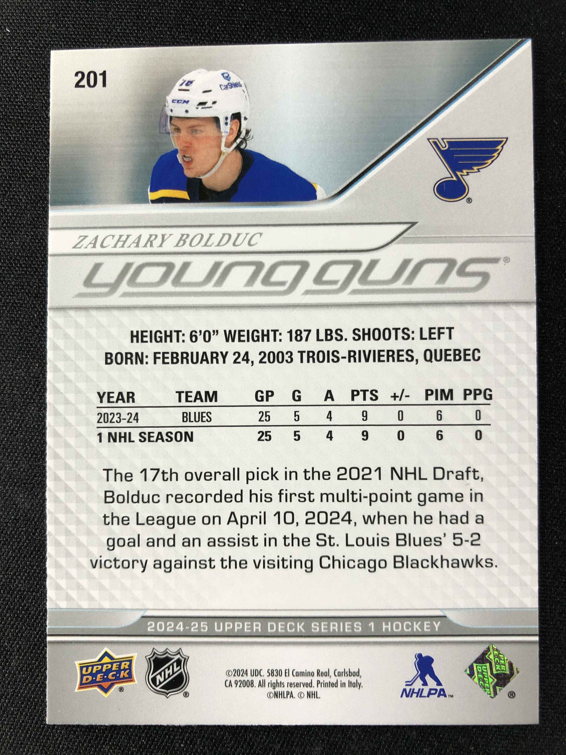 Sběratelská karta 2024/2025 Upper Deck Series 1 Young Guns 201 Zachary Bolduc Inzert