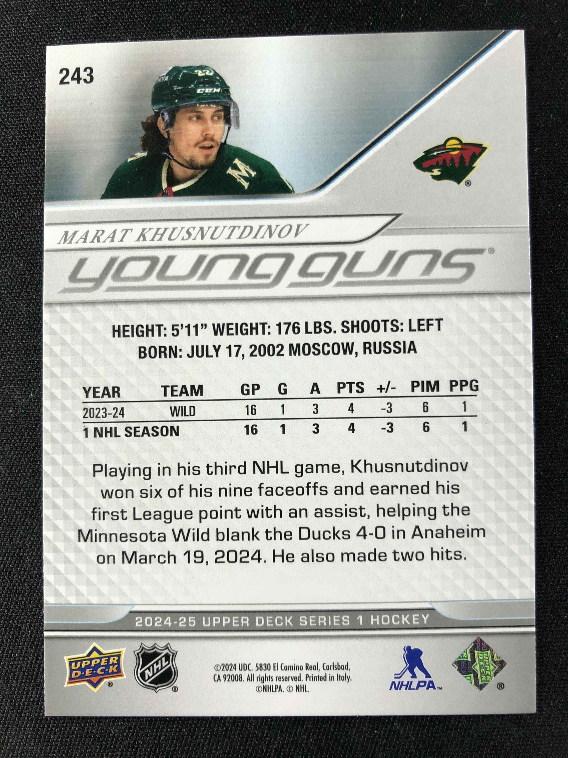 Sběratelská karta 2024/2025 Upper Deck Series 1 Young Guns 243 Marat Khusnutdinov Inzert