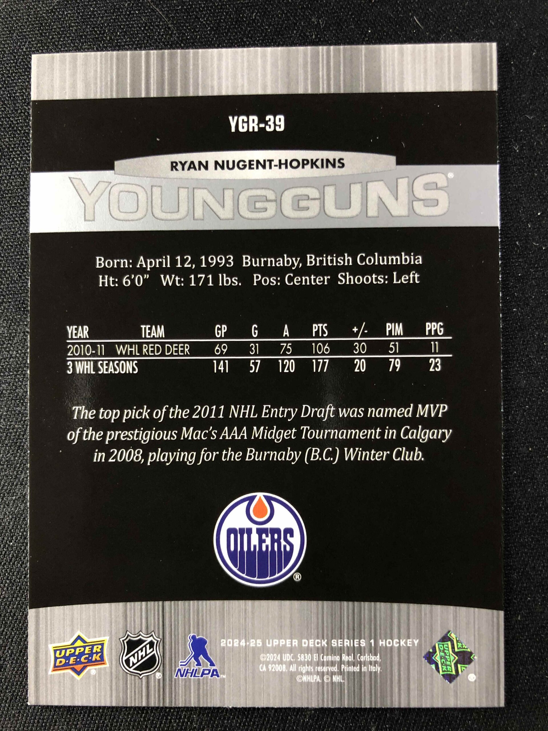 Sběratelská karta 2024/2025 Upper Deck Series 1 Young Guns Renewed YGR-39 Ryan Nugent-Hopkins Inzert