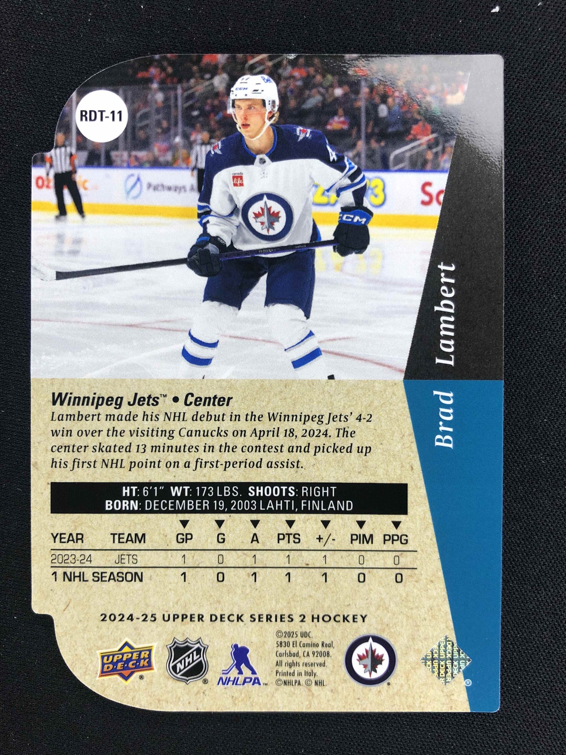 Sběratelská karta 2024/2025 Upper Deck Series 2 94/95 Rookie Tribute Die-Cuts RDT-11 Brad Lambert Inzert