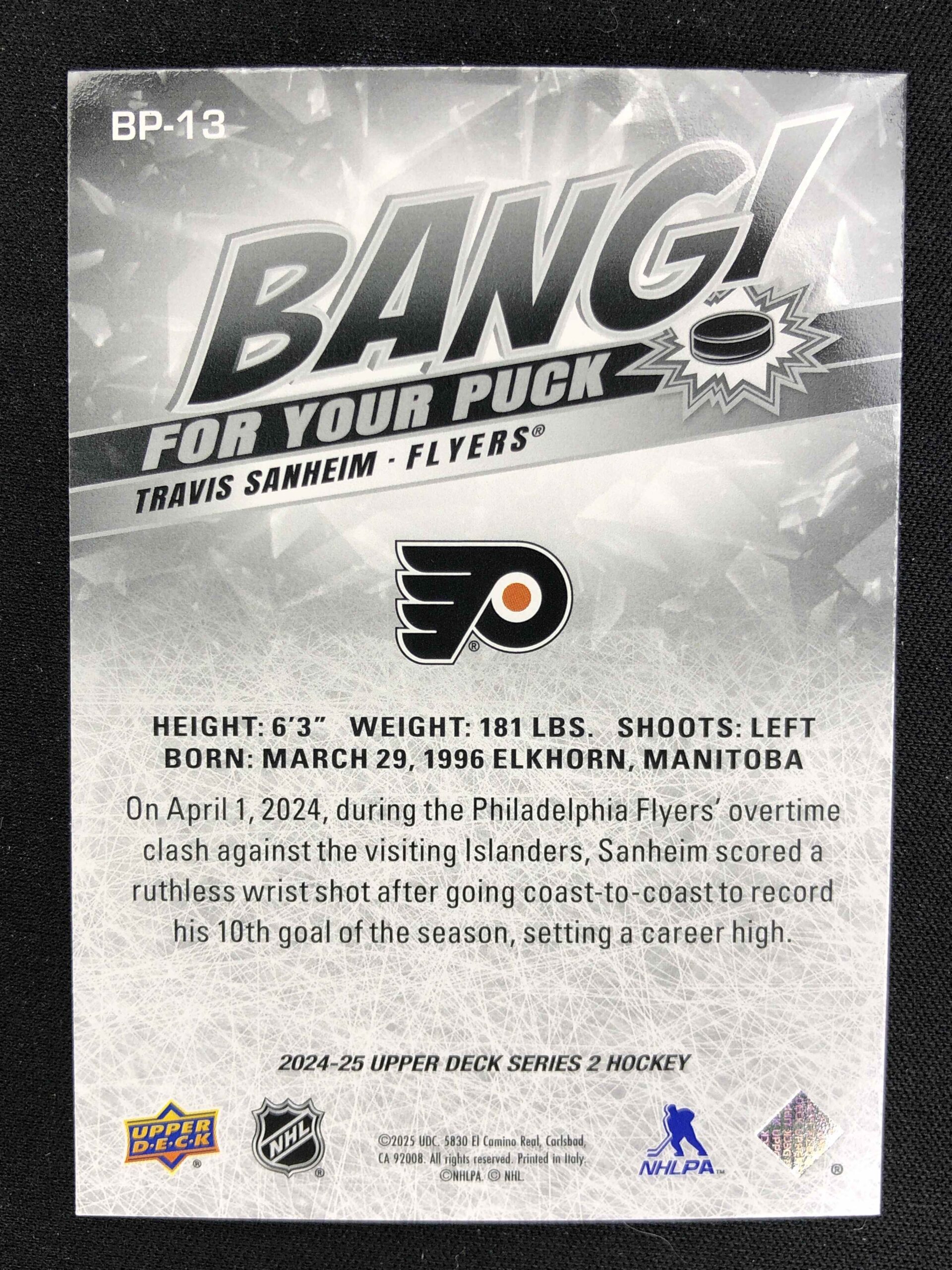 Sběratelská karta 2024/2025 Upper Deck Series 2 Bang! For Your Puck BP-13 Travis Sanheim Inzert