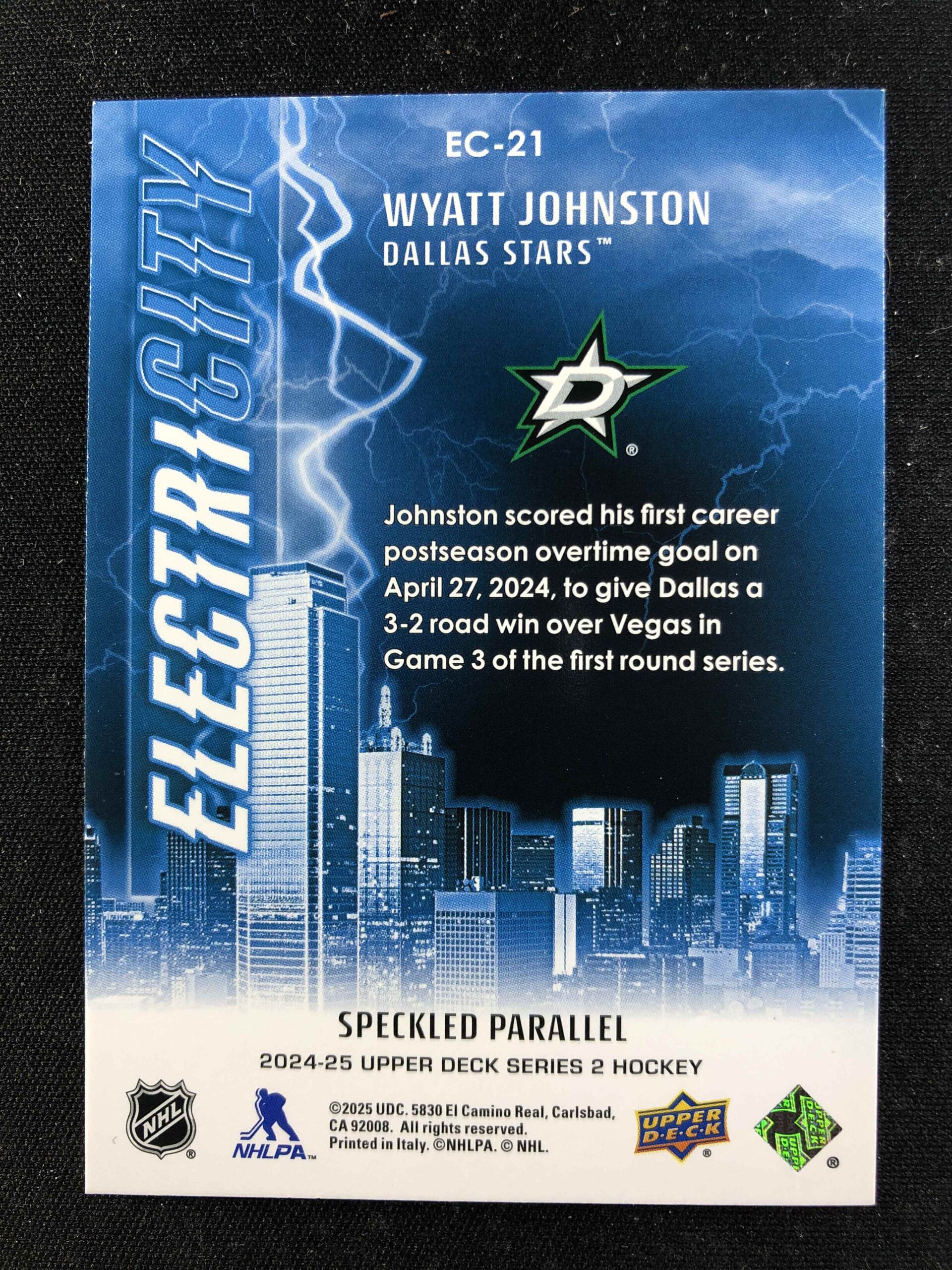 Sběratelská karta 2024/2025 Upper Deck Series 2 Electricity Speckled EC-21 Wyatt Johnston Inzert