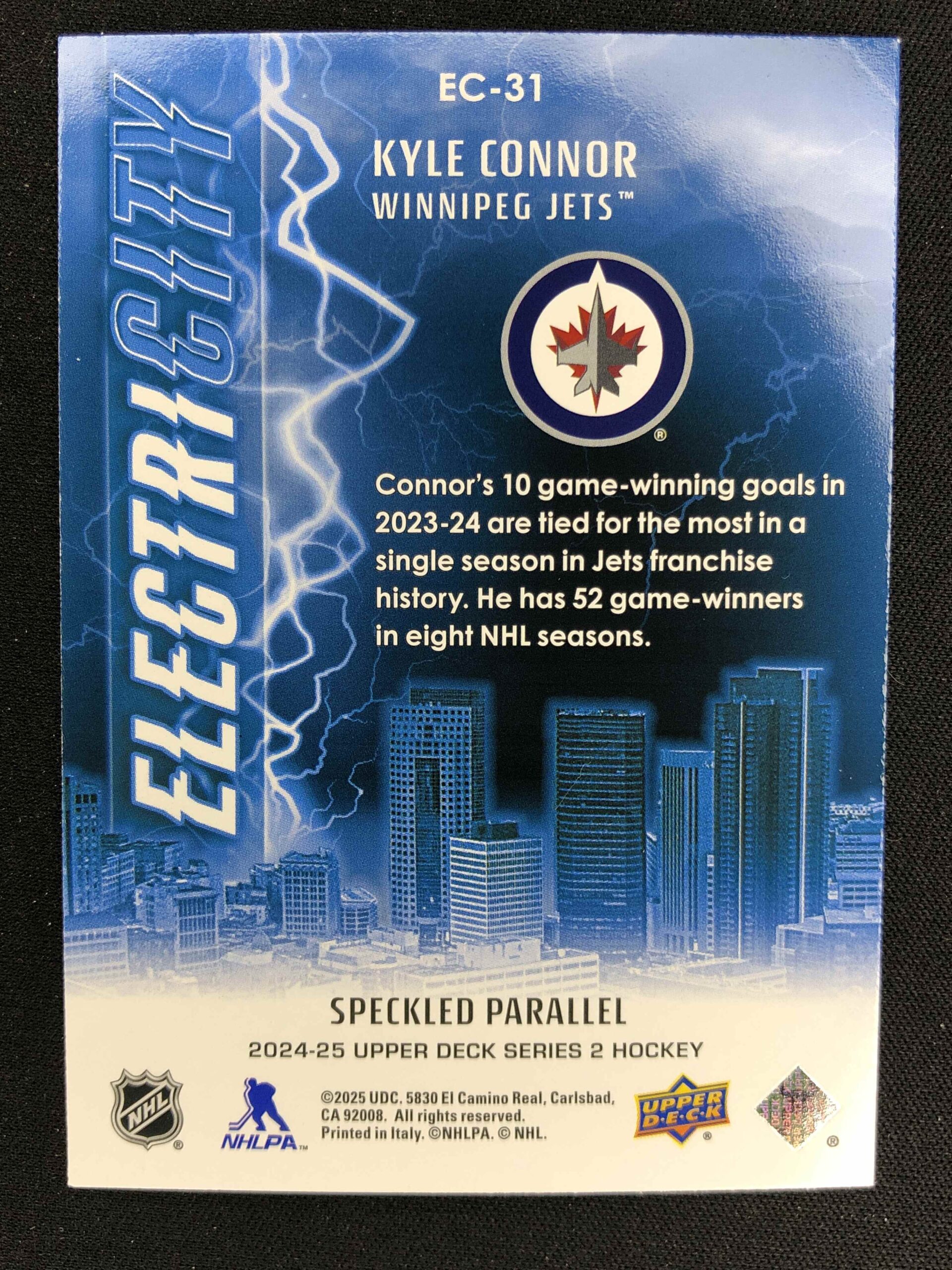 Sběratelská karta 2024/2025 Upper Deck Series 2 Electricity Speckled EC-31 Kyle Connor Inzert