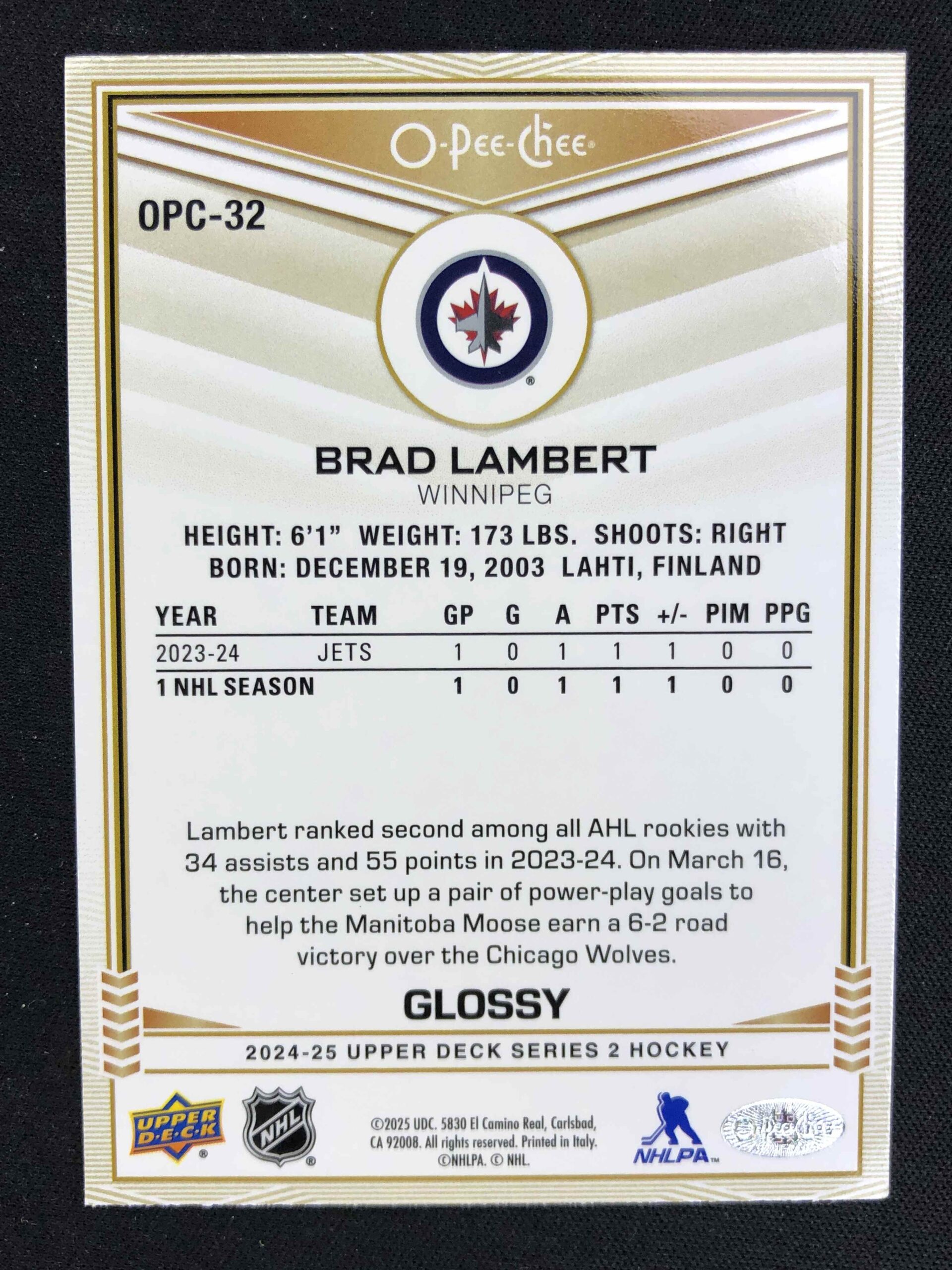Sběratelská karta 2024/2025 Upper Deck Series 2 Glossy OPC-32 Brad Lambert Inzert