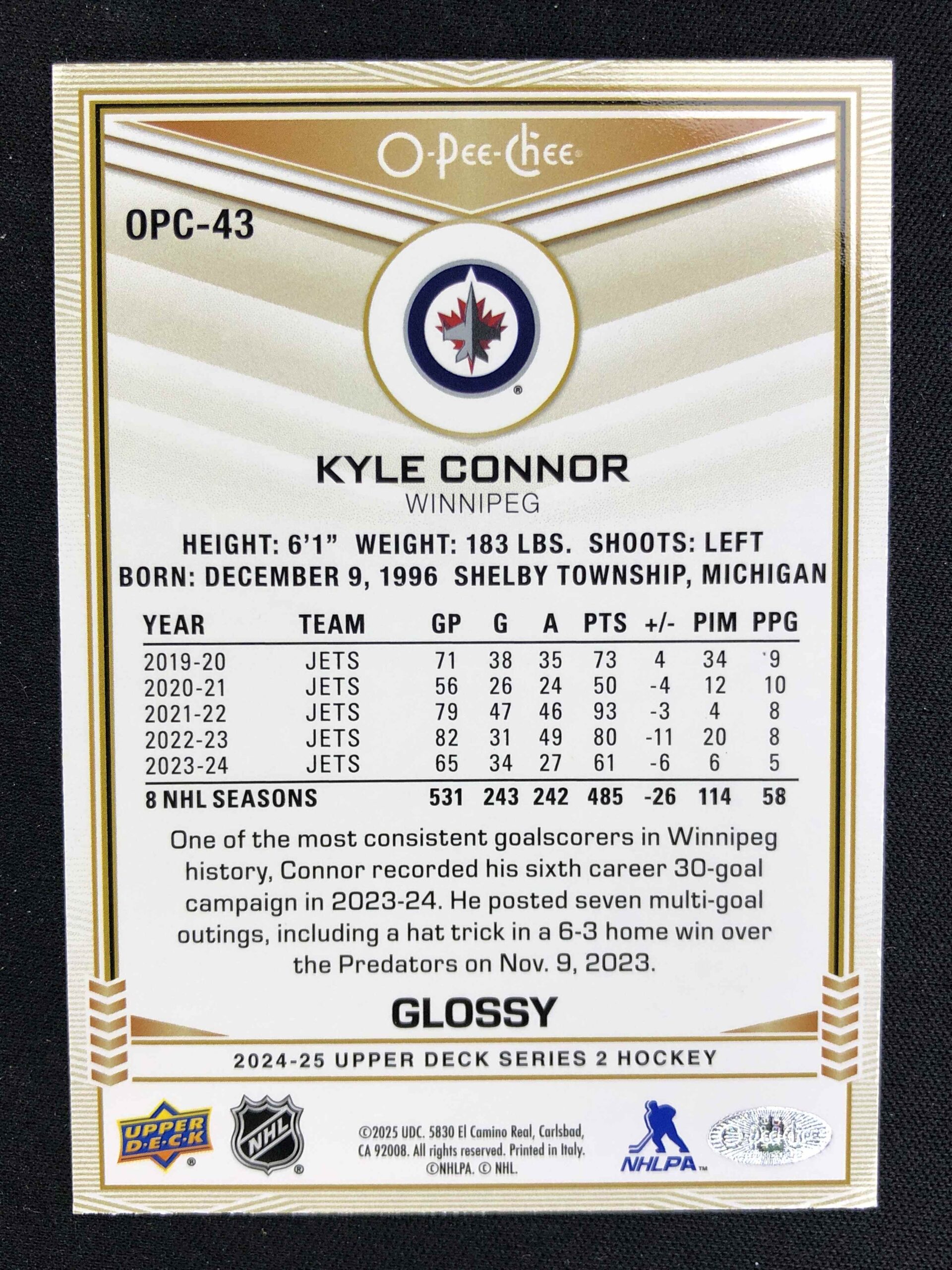 Sběratelská karta 2024/2025 Upper Deck Series 2 Glossy OPC-43 Kyle Connor Inzert