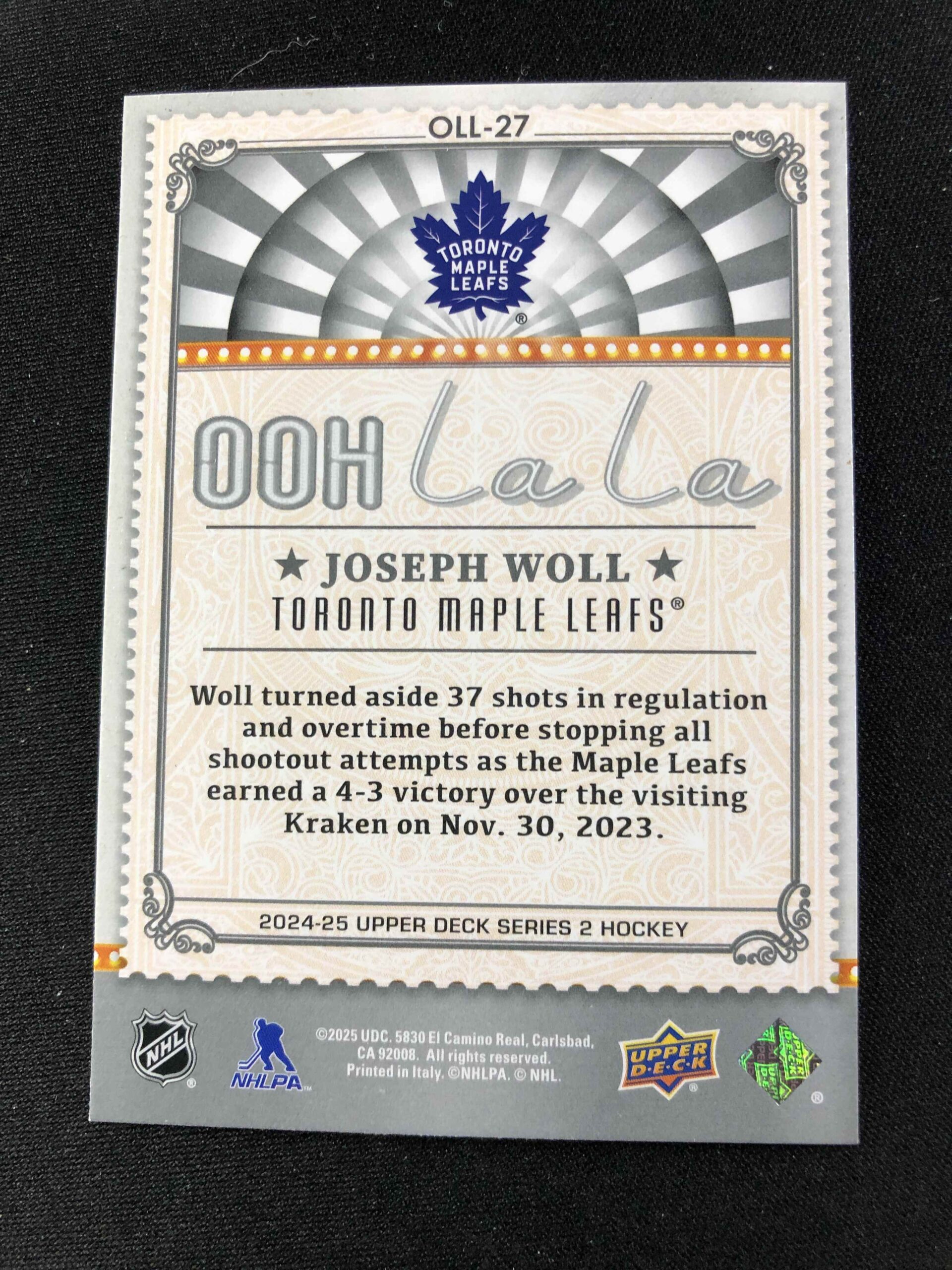 Sběratelská karta 2024/2025 Upper Deck Series 2 Ooh La La OLL-27 Joseph Woll Inzert