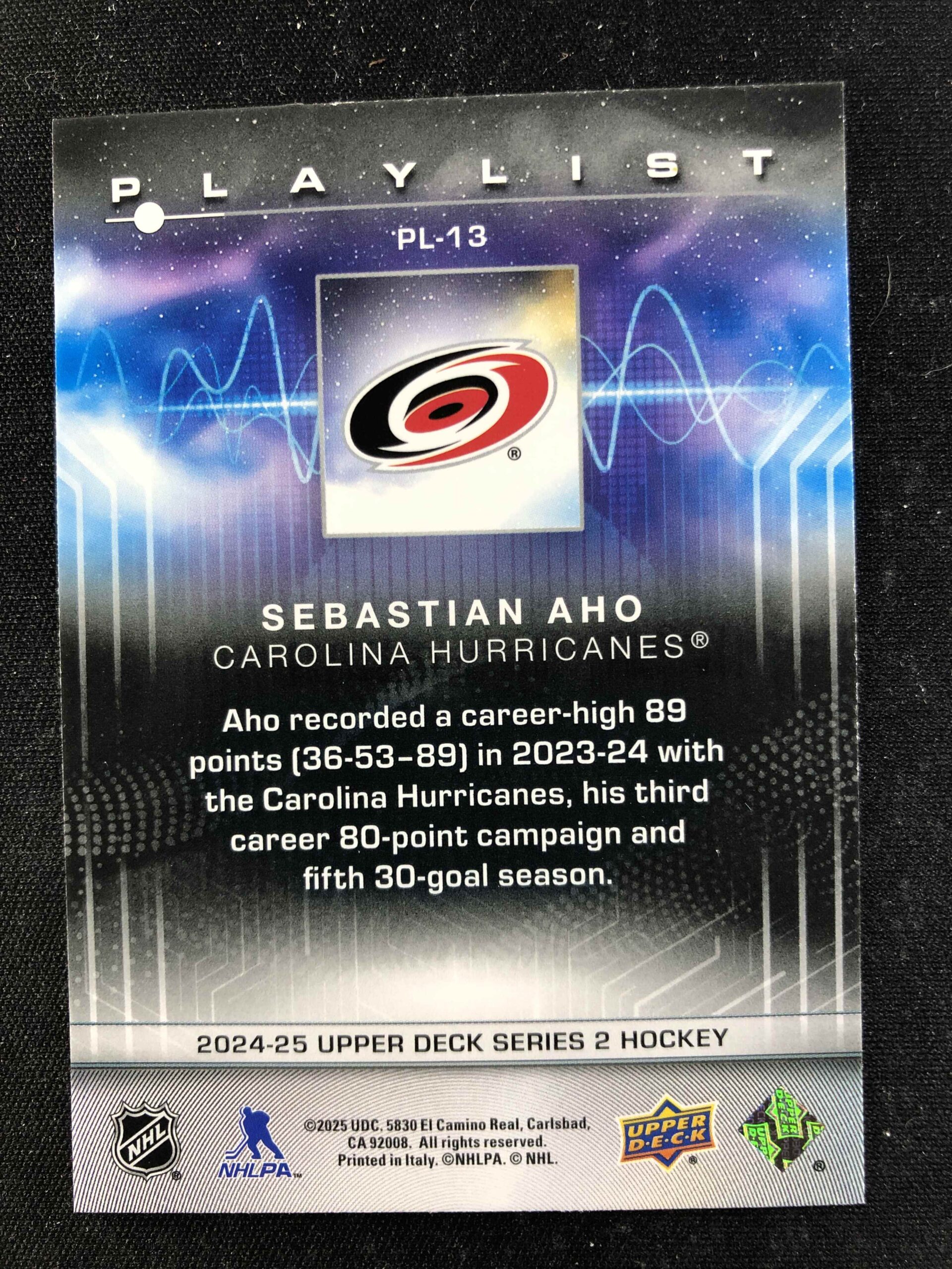 Sběratelská karta 2024/2025 Upper Deck Series 2 Playlist PL-13 Sebastian Aho Inzert