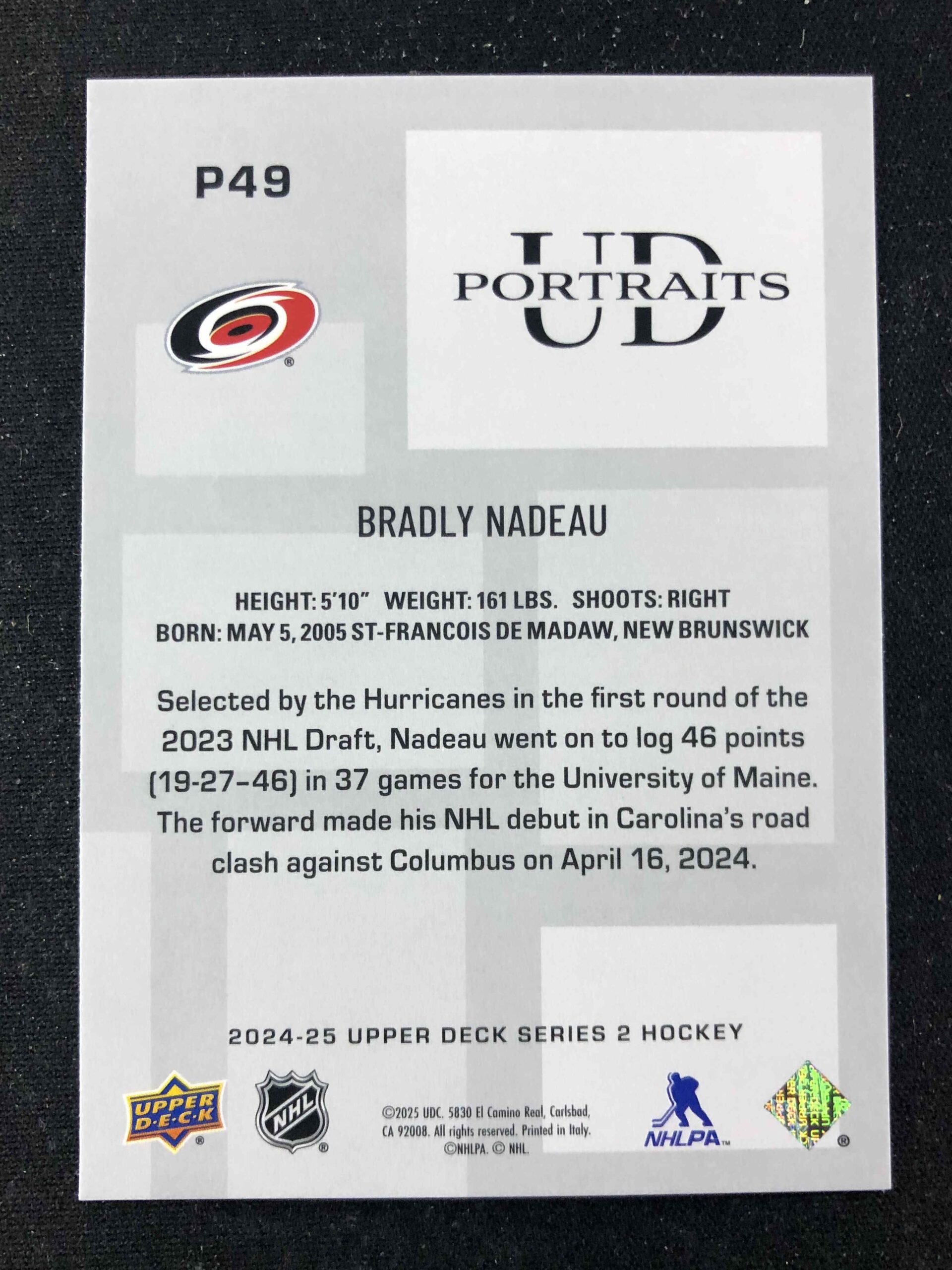 Sběratelská karta 2024/2025 Upper Deck Series 2 Portraits P49 Bradly Nadeau Inzert