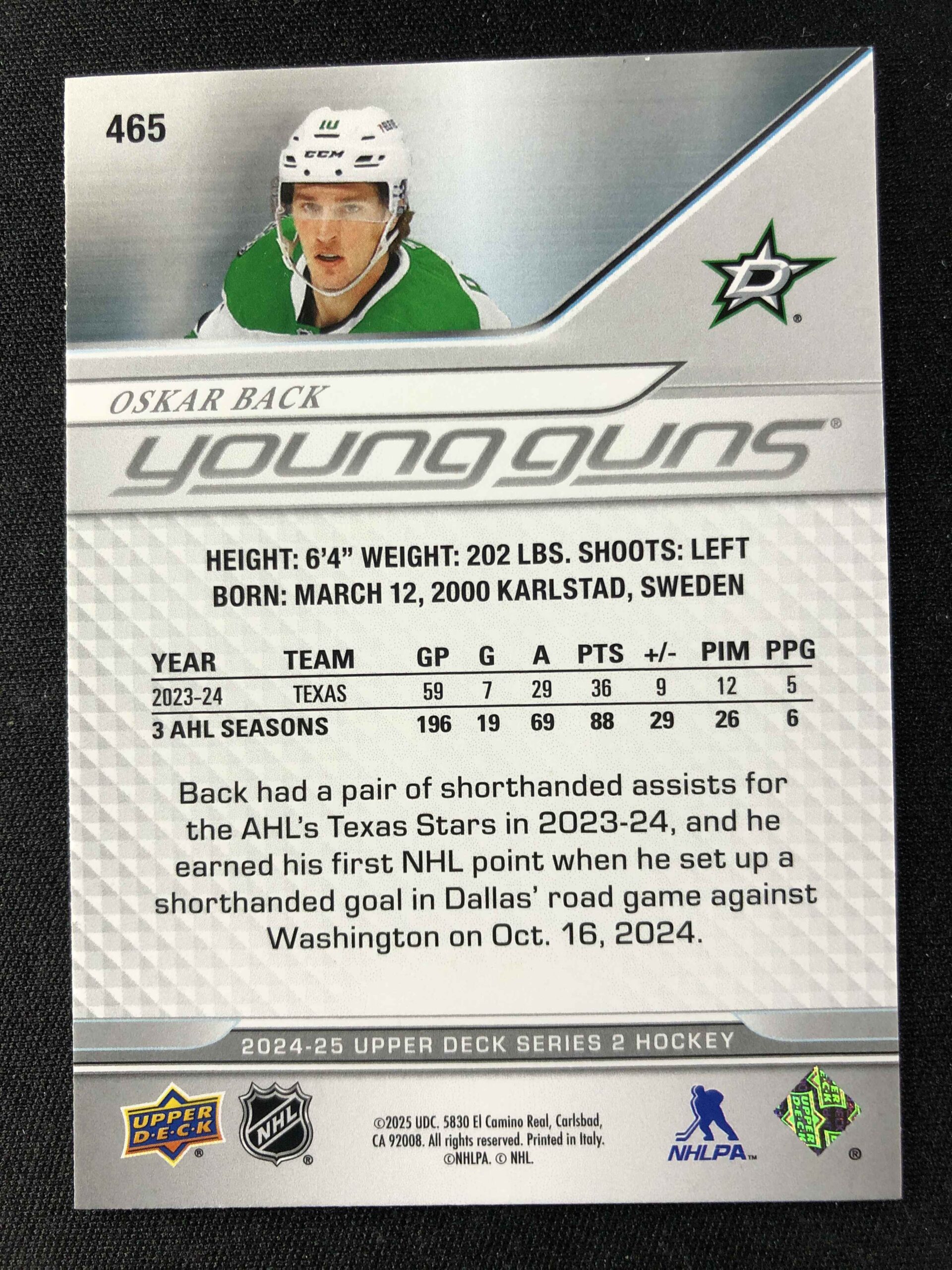 2024/2025 Upper Deck Series 2 Young Guns 465 Oskar Back Inzert