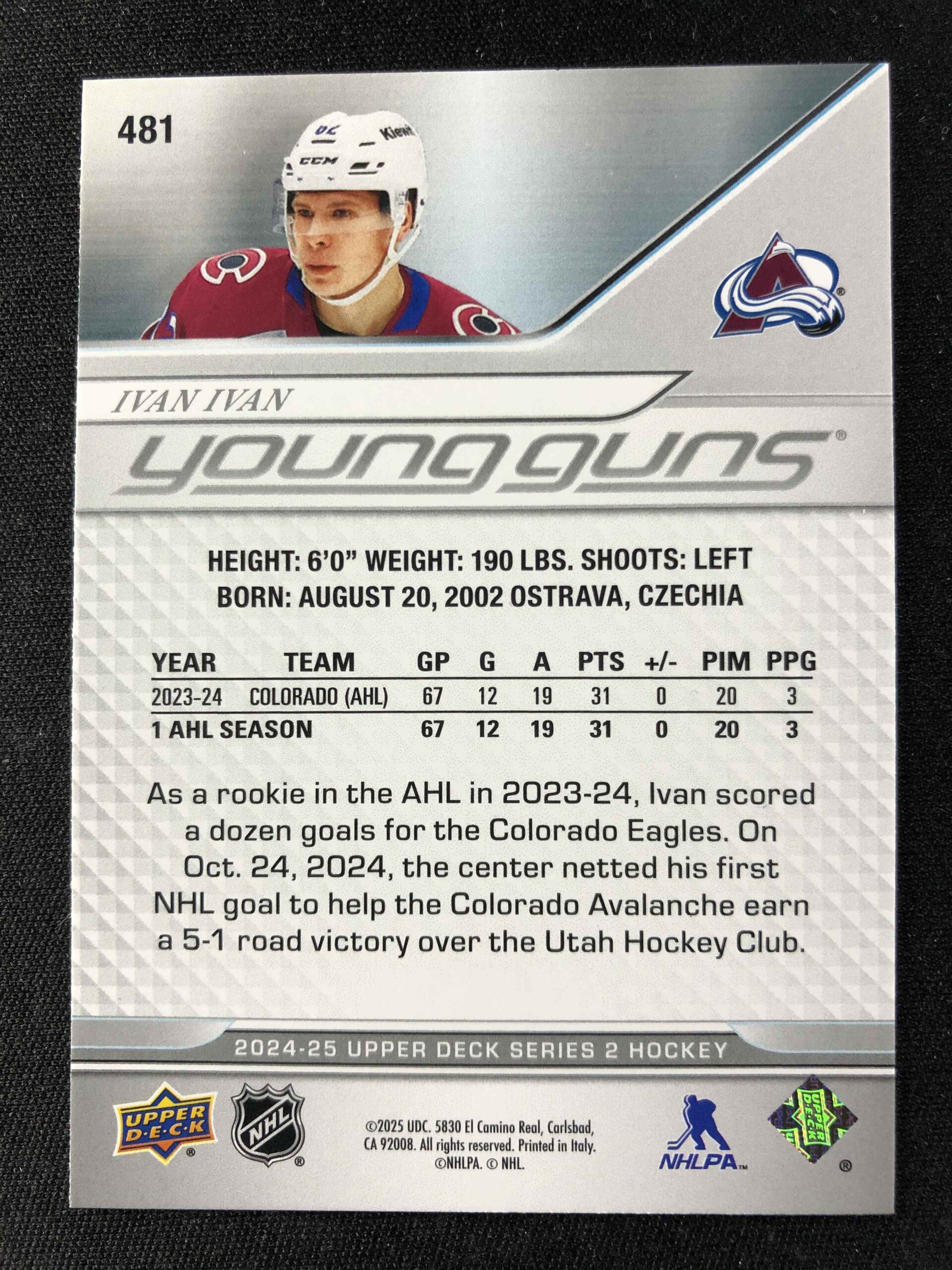 2024/2025 Upper Deck Series 2 Young Guns 481 Ivan Ivan Inzert
