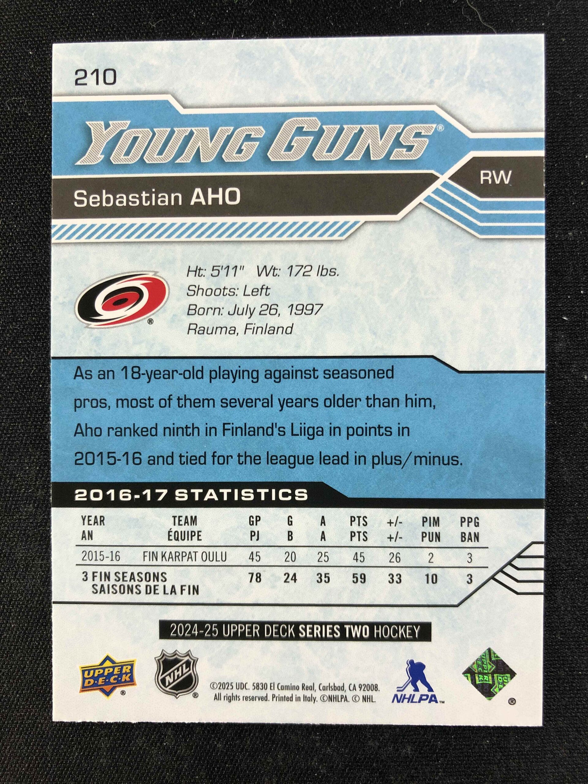2024/2025 Upper Deck Series 2 Young Guns Renewed 210 Sebastian Aho Inzert