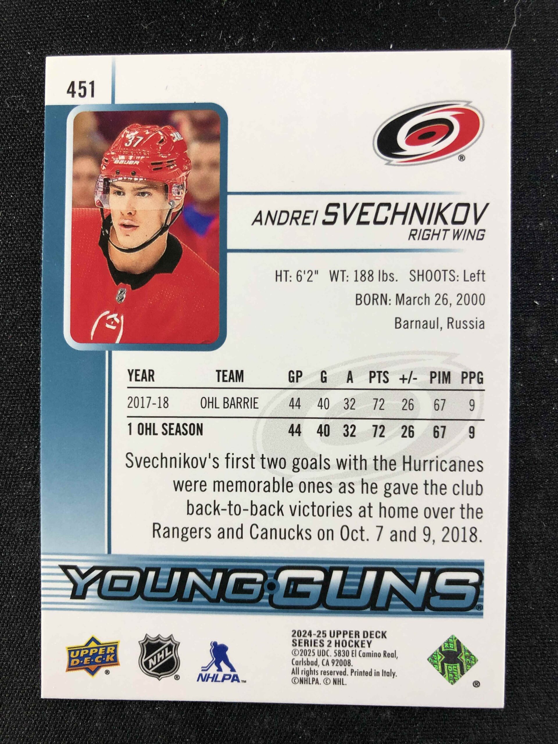 Sběratelská karta 2024/2025 Upper Deck Series 2 Young Guns Renewed 451 Andrei Svechnikov Inzert