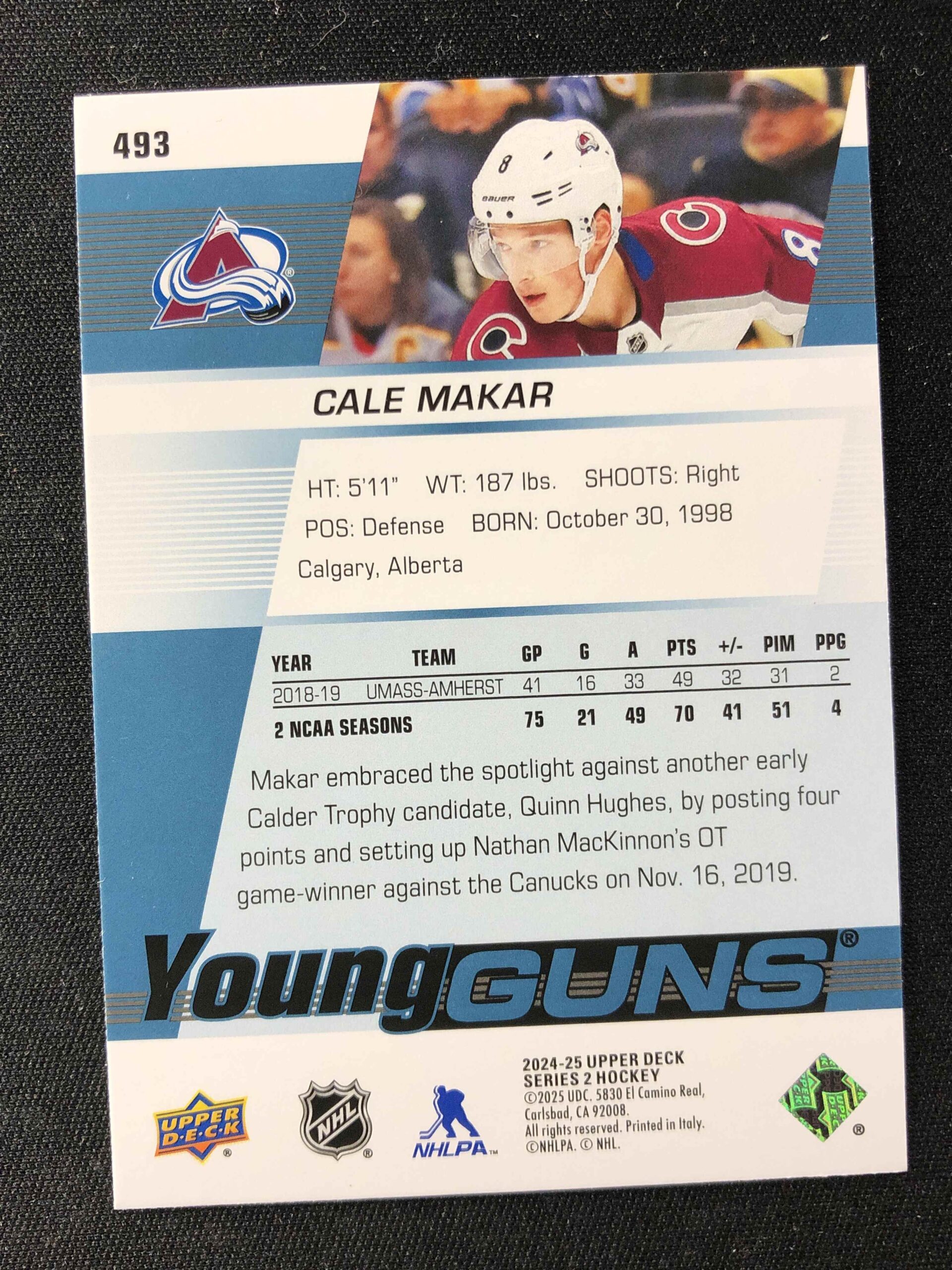 Sběratelská karta 2024/2025 Upper Deck Series 2 Young Guns Renewed 493 Cale Makar Inzert