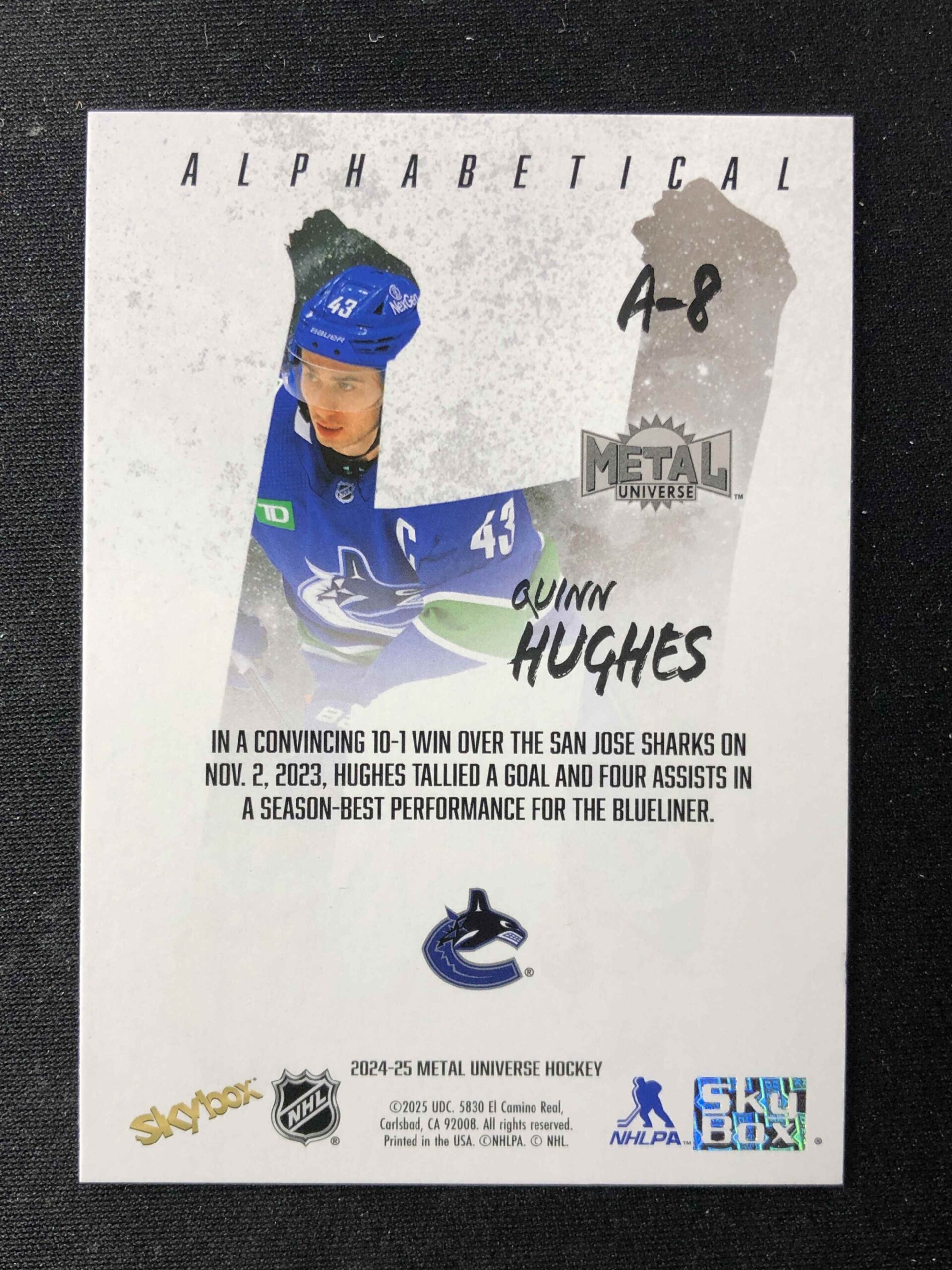 Sběratelská karta 2024/2025 Upper Deck Skybox Metal Universe Alphabetical A-8 Quinn Hughes Inzert
