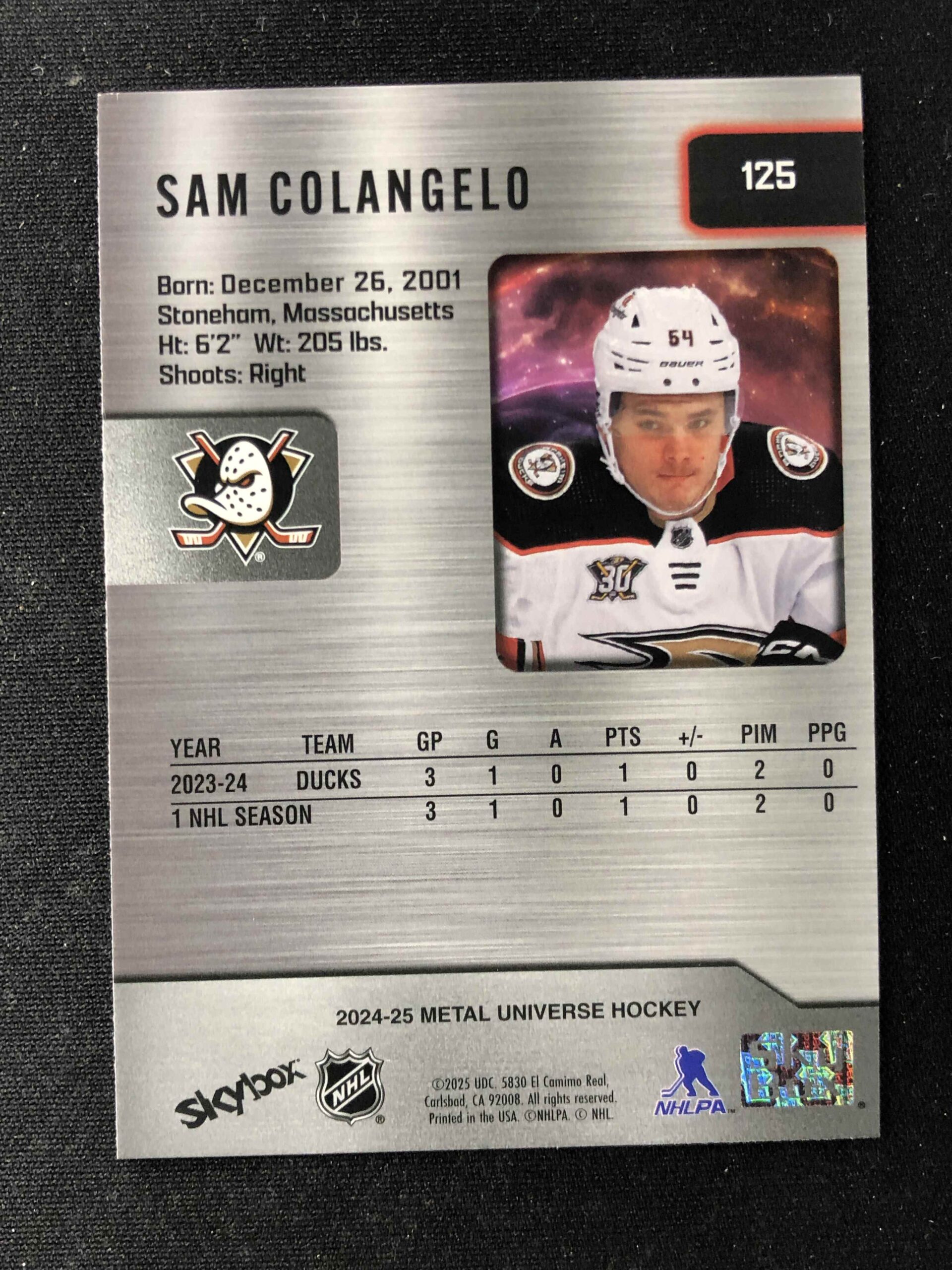 Sběratelská karta 2024/2025 Upper Deck Skybox Metal Universe Base 125 Sam Colangelo