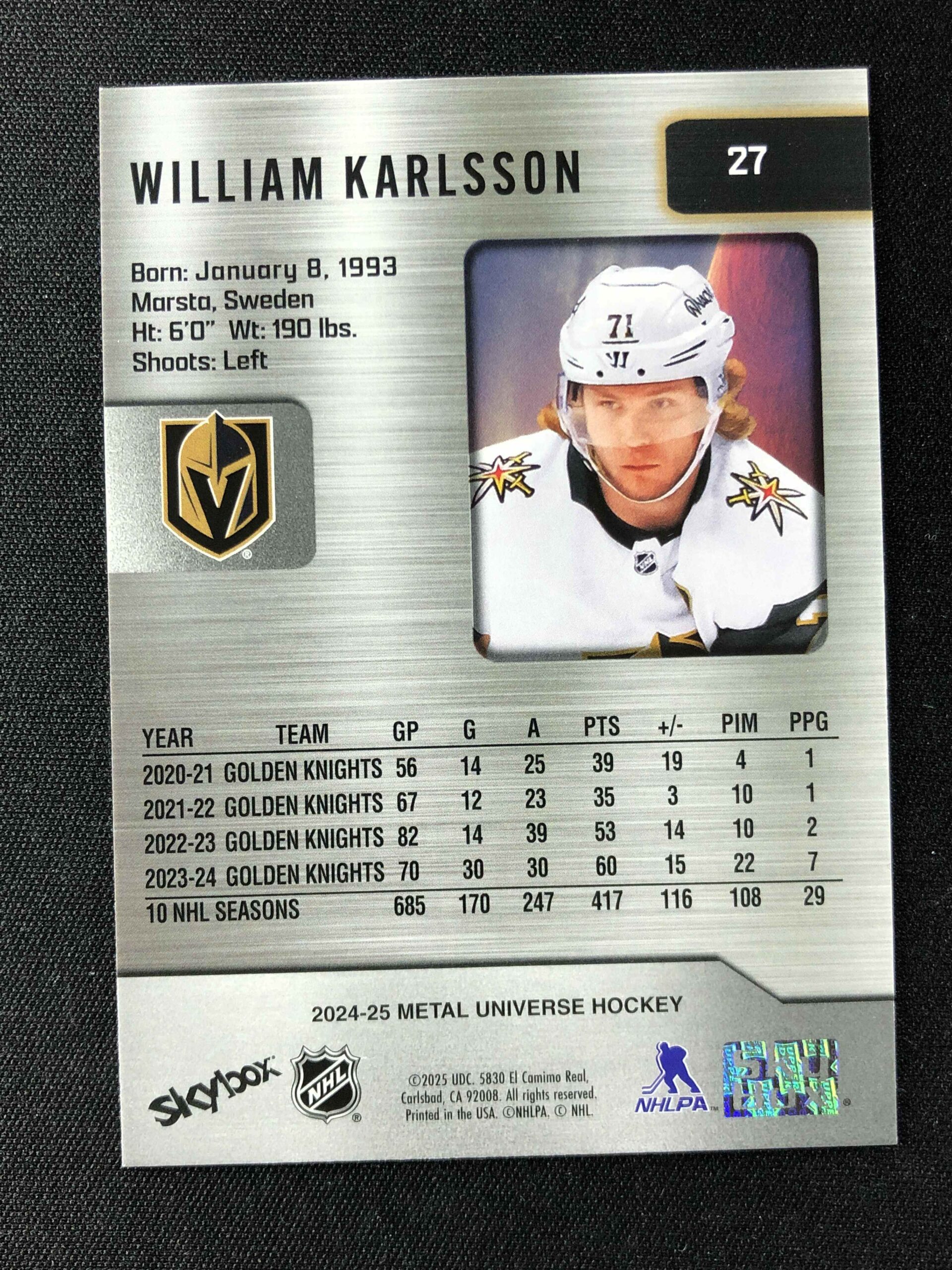 Sběratelská karta 2024/2025 Upper Deck Skybox Metal Universe Base 27 William Karlsson