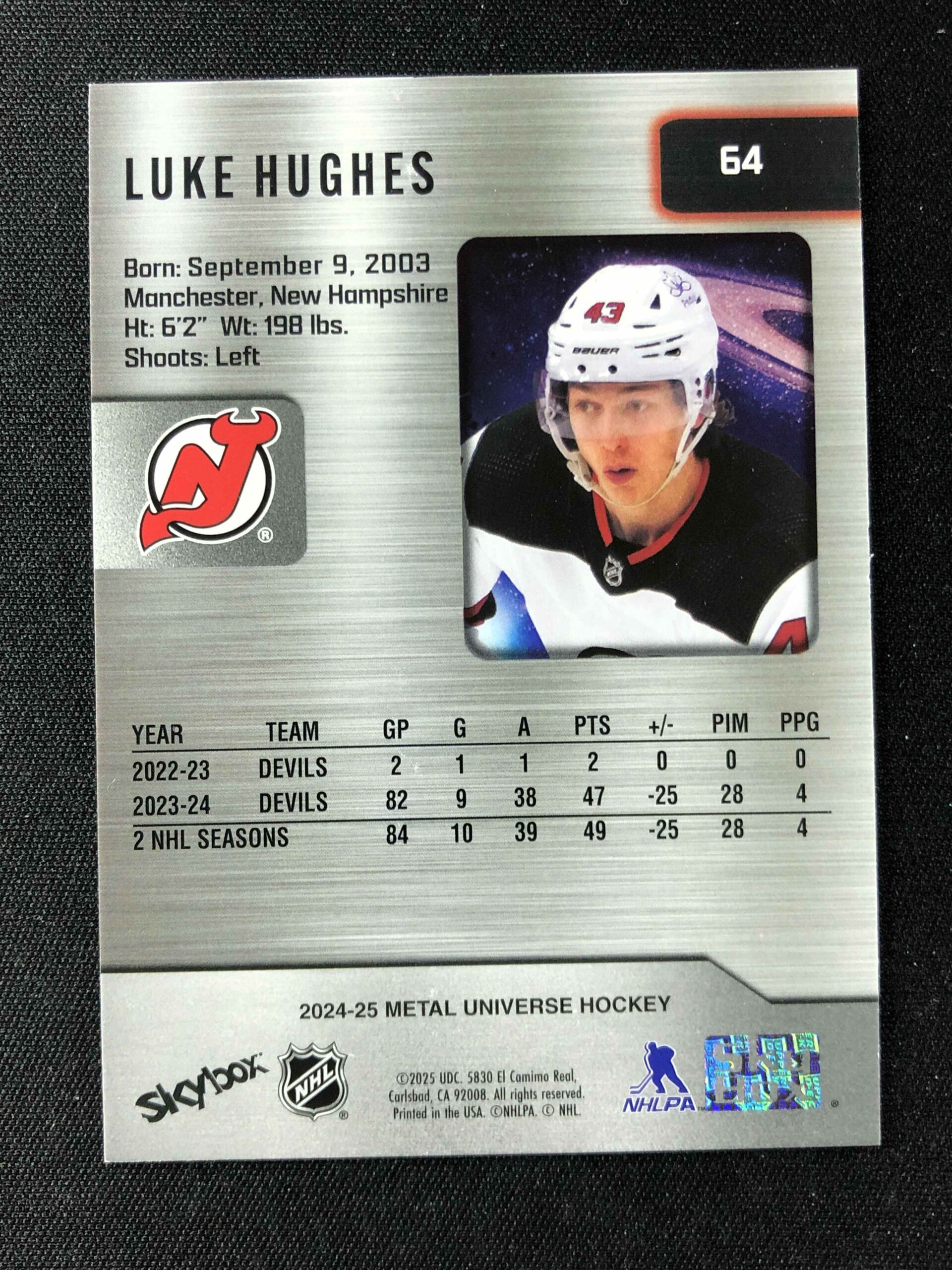 Sběratelská karta 2024/2025 Upper Deck Skybox Metal Universe Base 64 Luke Hughes