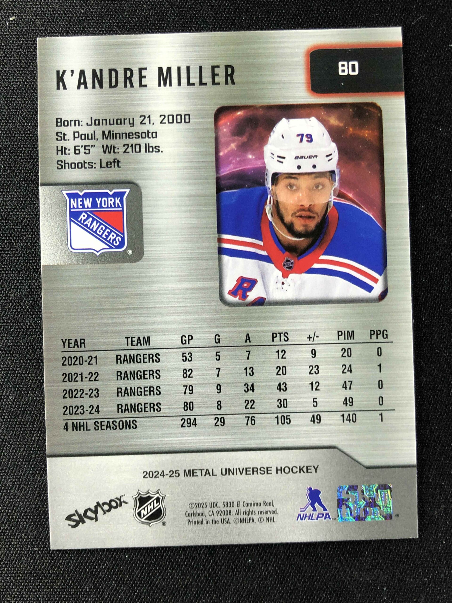 Sběratelská karta 2024/2025 Upper Deck Skybox Metal Universe Base 80 K’Andre Miller