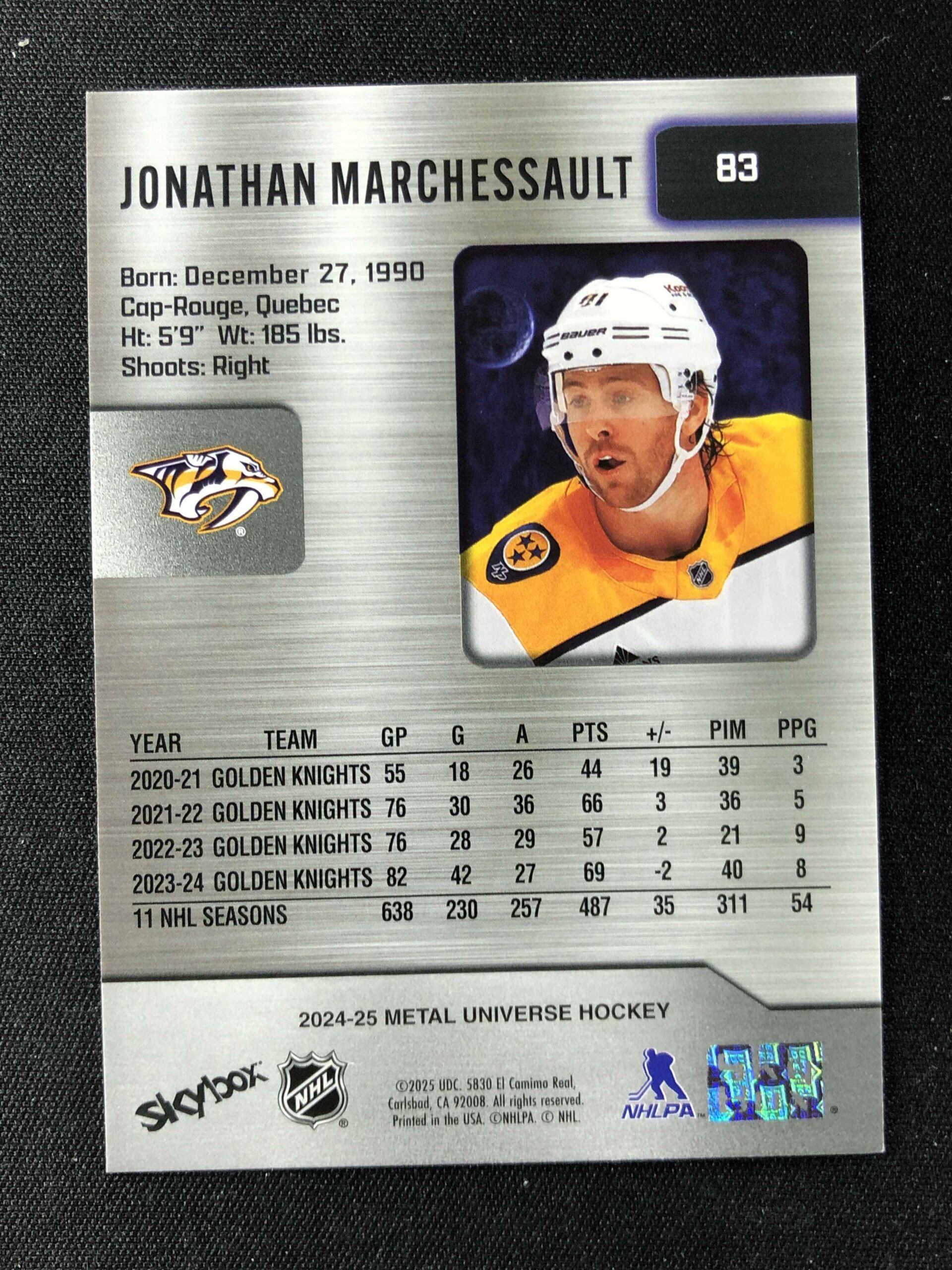 2024/2025 Upper Deck Skybox Metal Universe Base 83 Jonathan Marchessault
