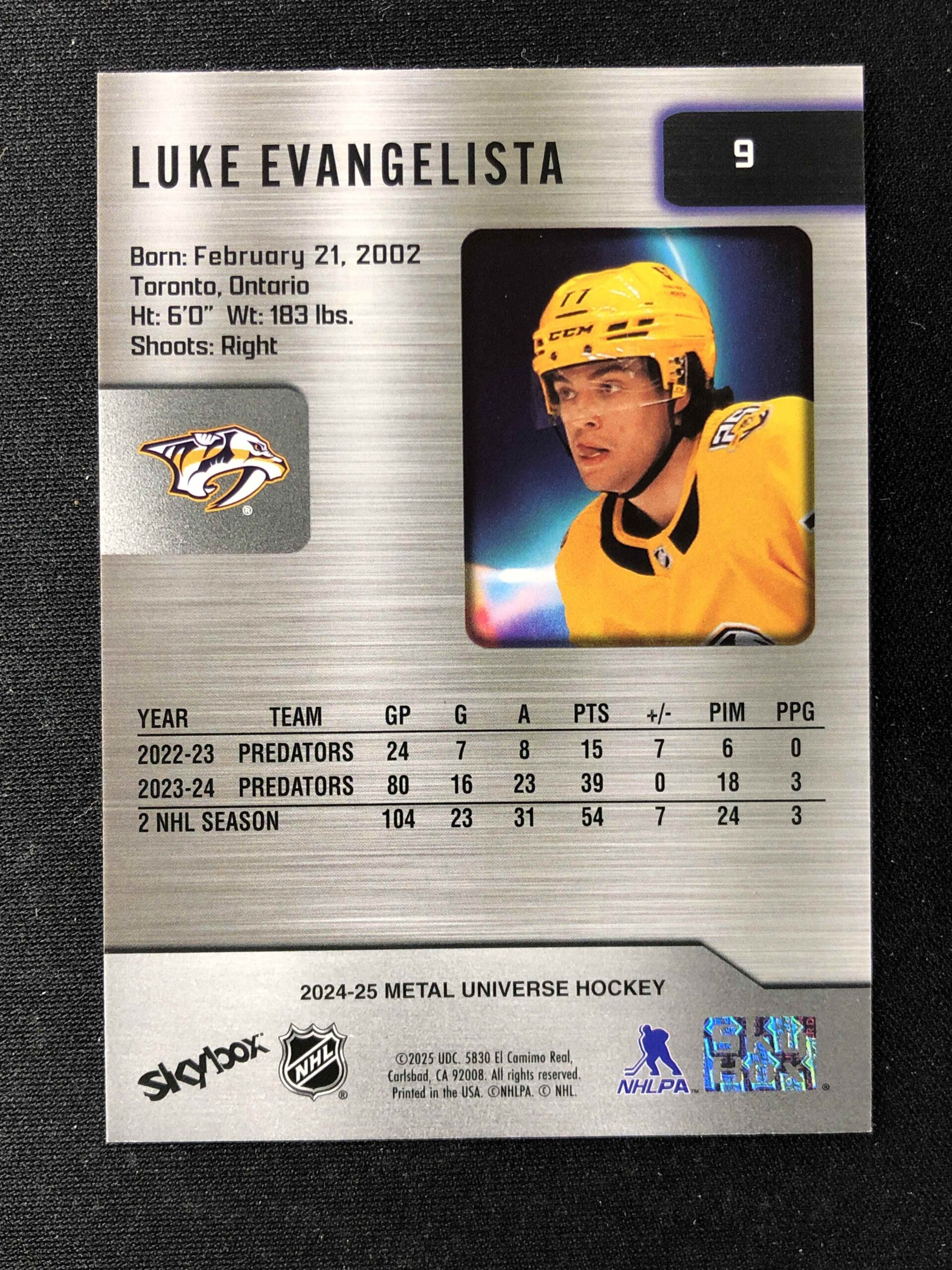 Sběratelská karta 2024/2025 Upper Deck Skybox Metal Universe Base 9 Luke Evangelista