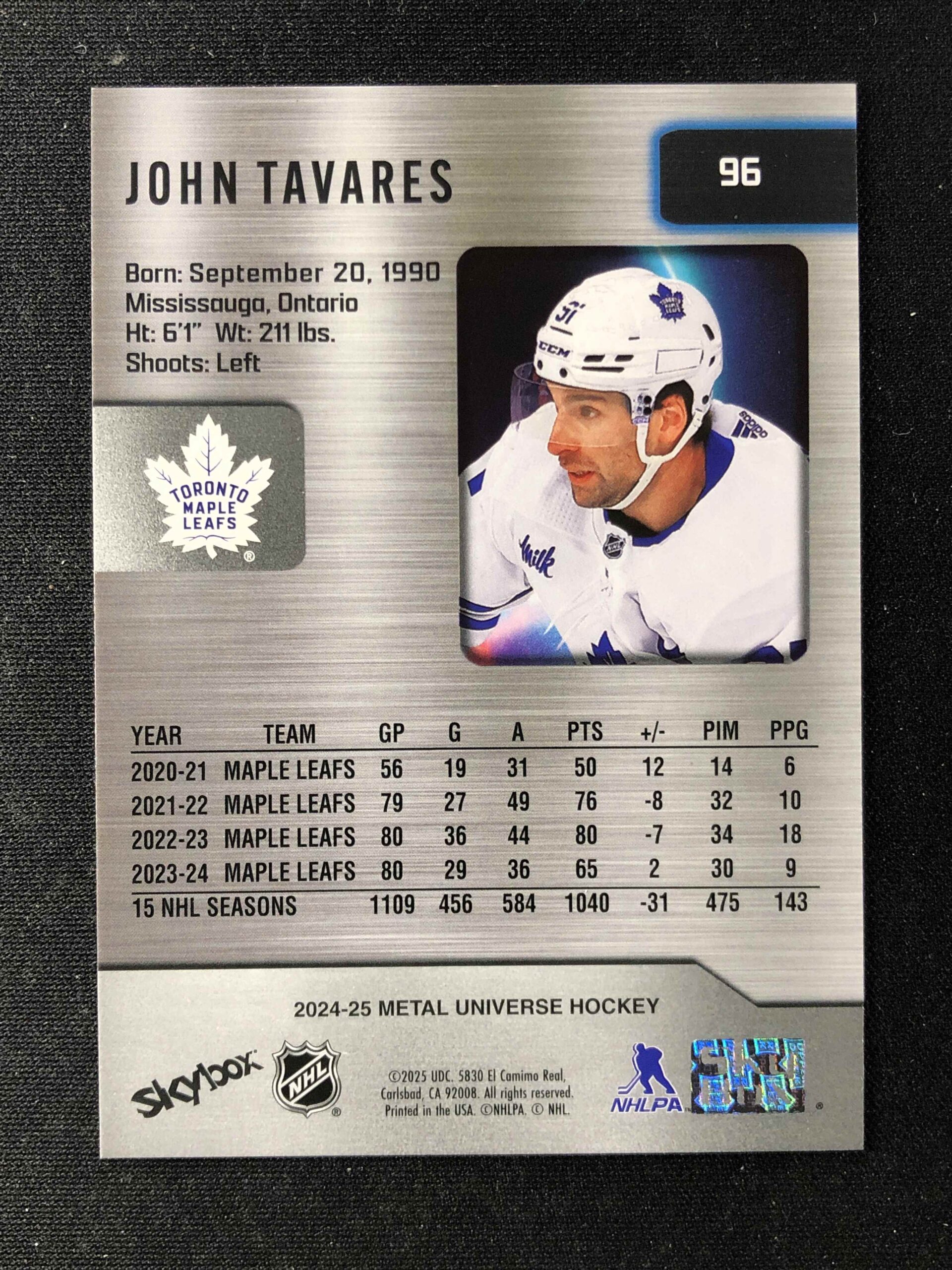 Sběratelská karta 2024/2025 Upper Deck Skybox Metal Universe Base 96 John Tavares